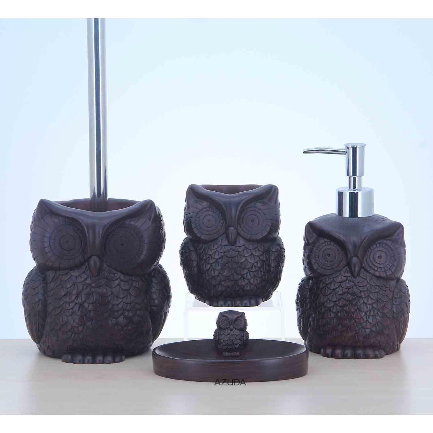 Polyresin Owl Design Bath Set W/Wood Grain Design