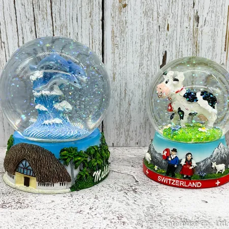 Polyresin Snow Globe / Water Ball is one of the most popular souvenir item around the world. If you use polyresin material to make water ball, not only it can make varied designs, but also it can present a sophisticated handmade craft to increase the value of souvenir. The snow globe diameter size is usually common: 45mm / 65mm / 80mm / 100mm and 120mm. If you want to make different size or shape, please contact us. Polyresin is a type of low-temperature resin and allows for the production of small quantities of diverse products, presenting various surface textures: smooth, rough, matte, glossy, shiny, and 3D effects.