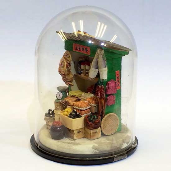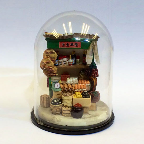 This is a native folk ornament that comes with a detailed appearance of a grocery shop. It is masterly crafted with exquisite groceries in bright colors. This decoration is made of quality polystone.