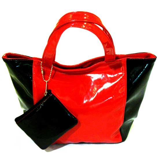 The attractive handbag is made up of polyurethane, featuring a stylish red and black combination with shiny finish. The tiny size stops you from feeling frustrated and disorganized when trying to rummage the elusive object in the bag. This fabulous handbag also comes with a tiny coin bag in black.