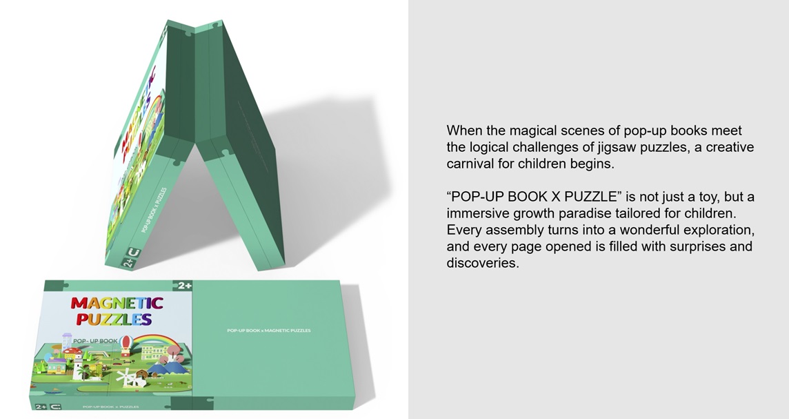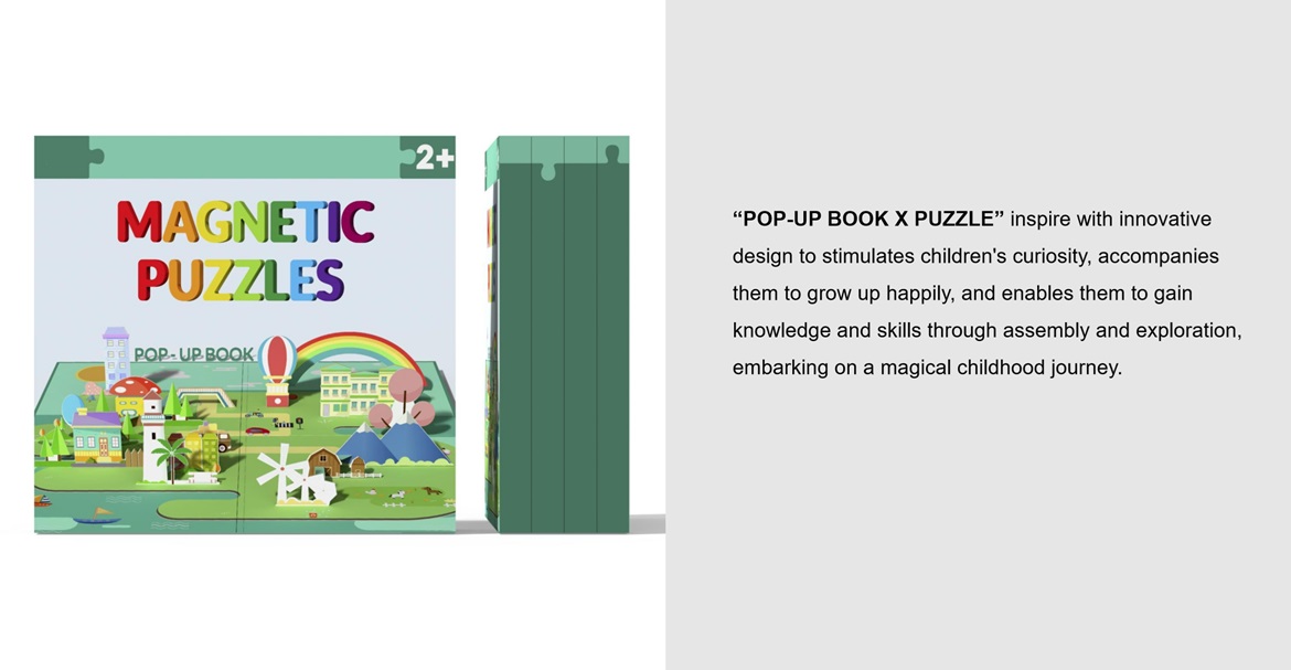 “POP-UP BOOK X PUZZLE” inspire with innovative design to stimulates children's curiosity, accompanies them to grow up happily, and enables them to gain knowledge and skills through assembly and exploration, embarking on a magical childhood journey.
