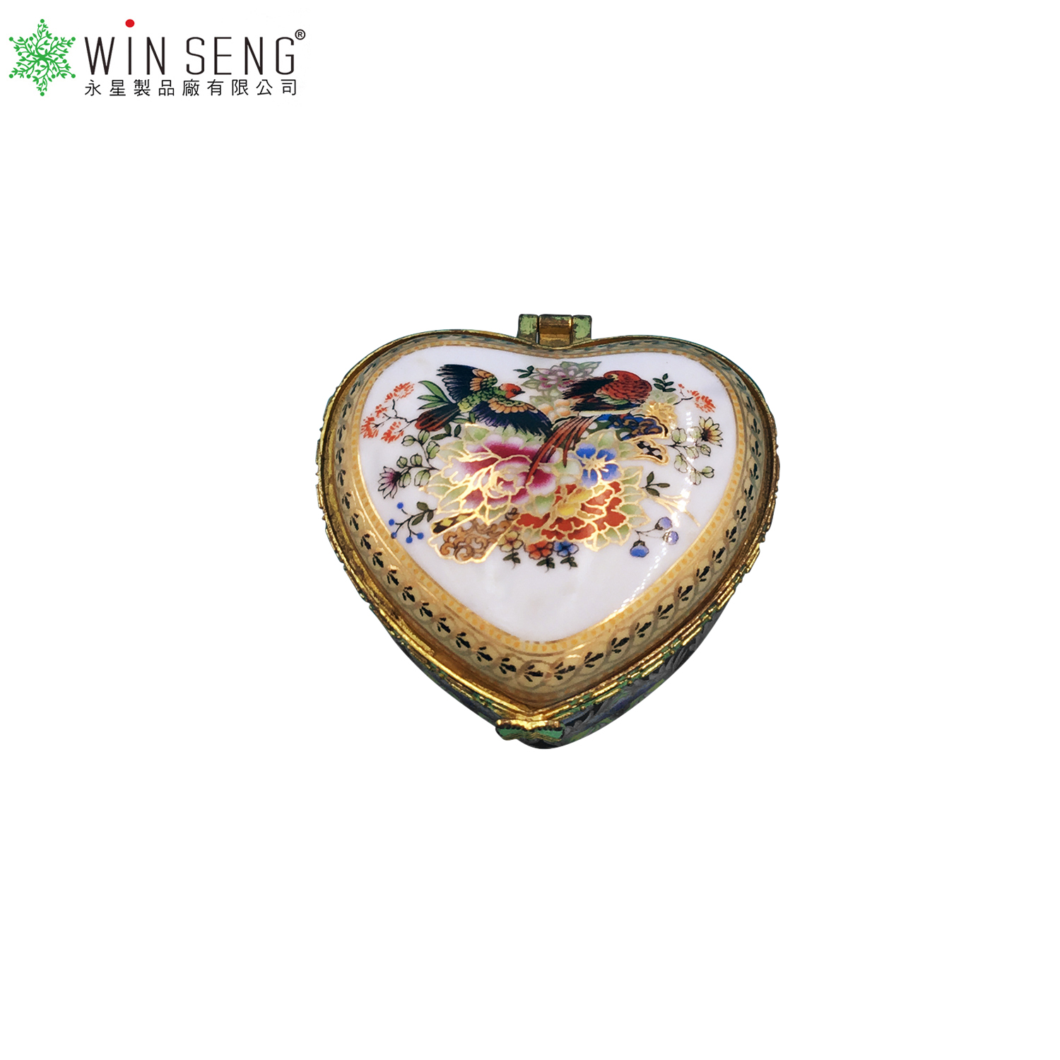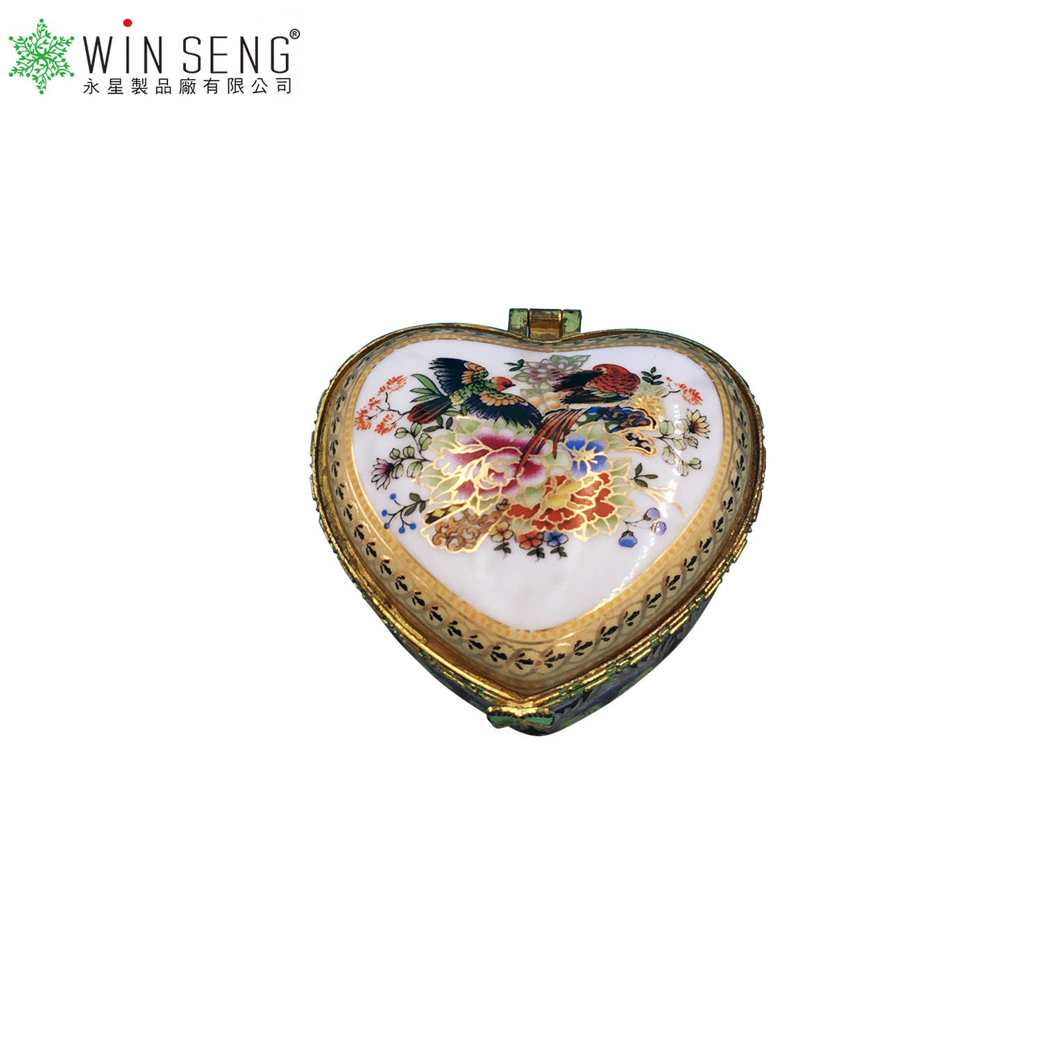 Porcelain Bird and Flower Heart-shaped Jewelry Box