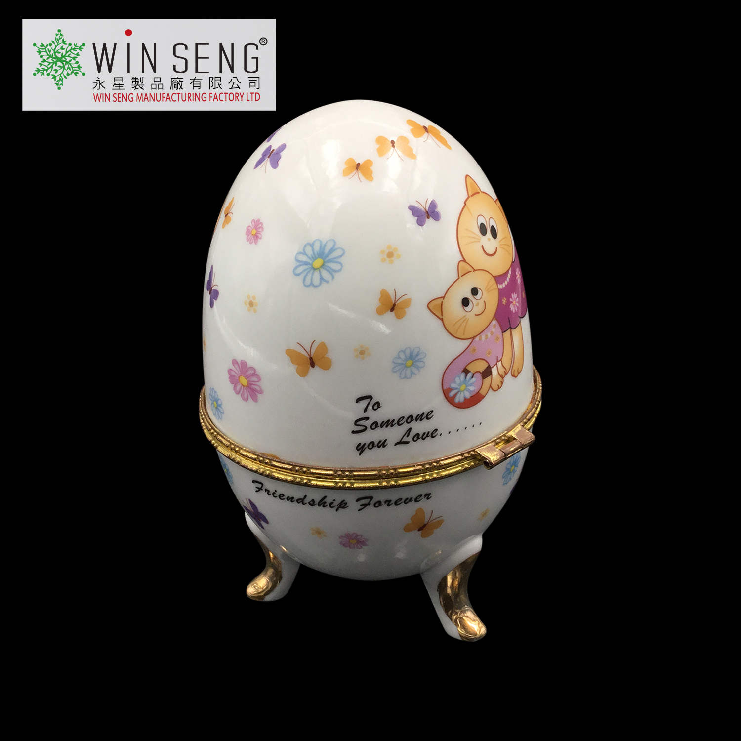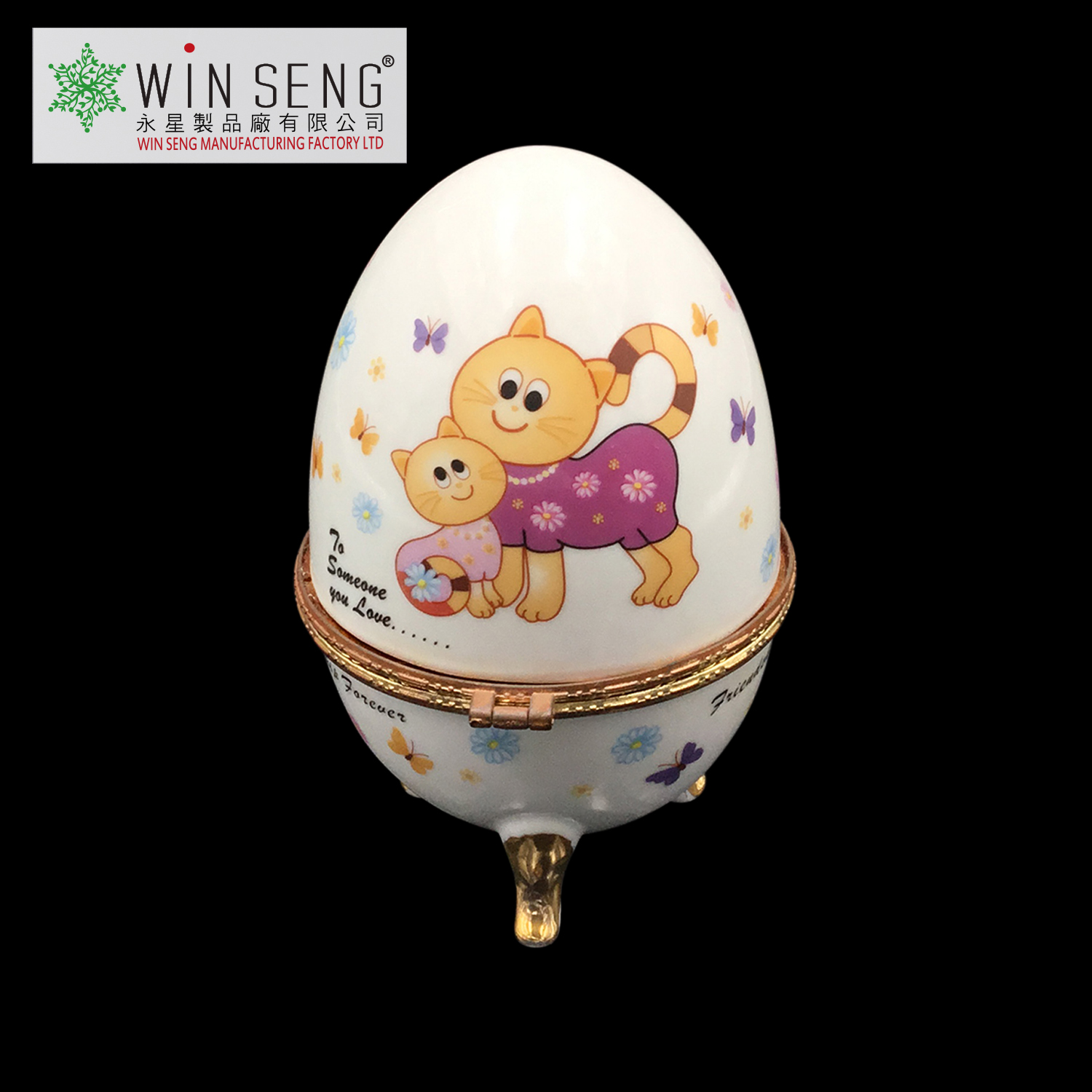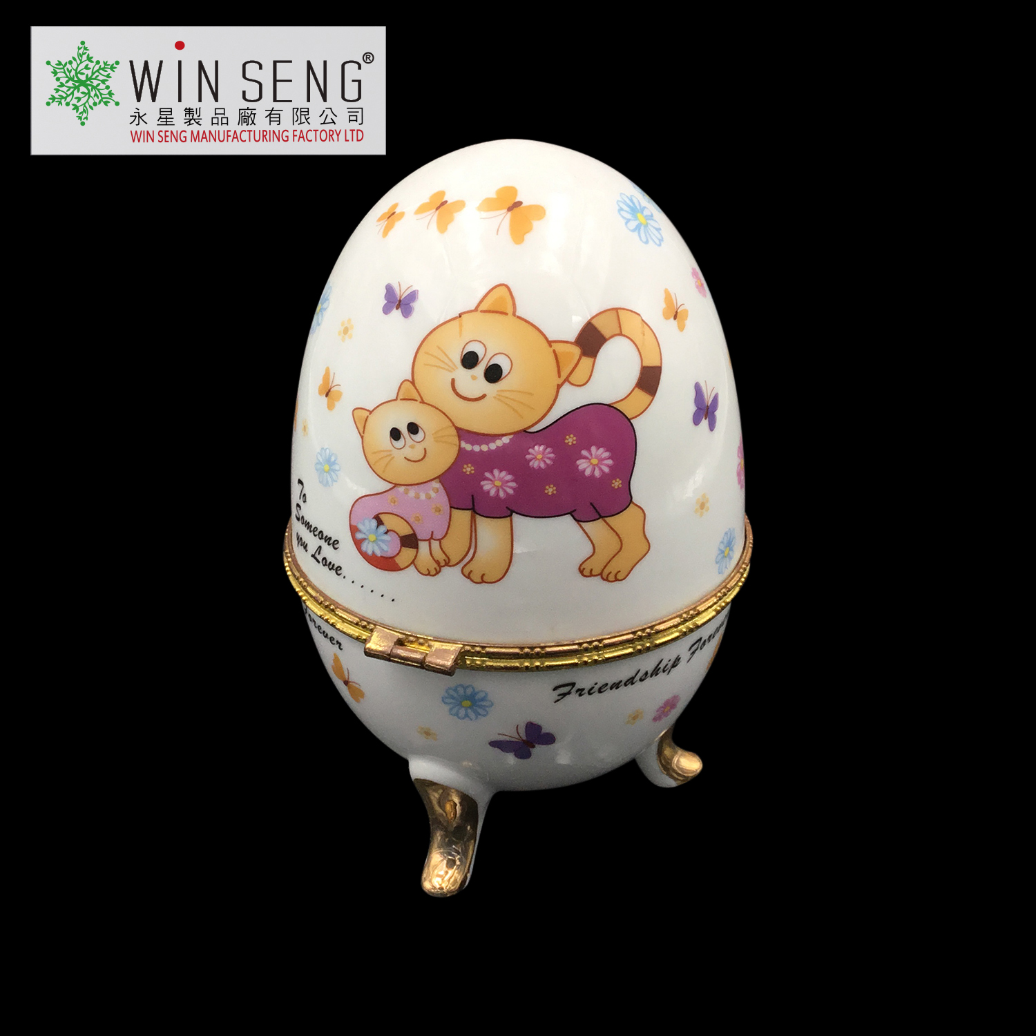 • Item Name: Porcelain cartoon cat family egg jewelry box