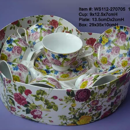• Porcelain coffee cup with saucer with flower pattern with 12pcs.