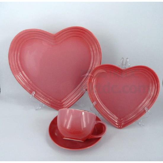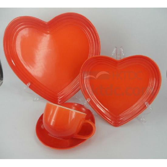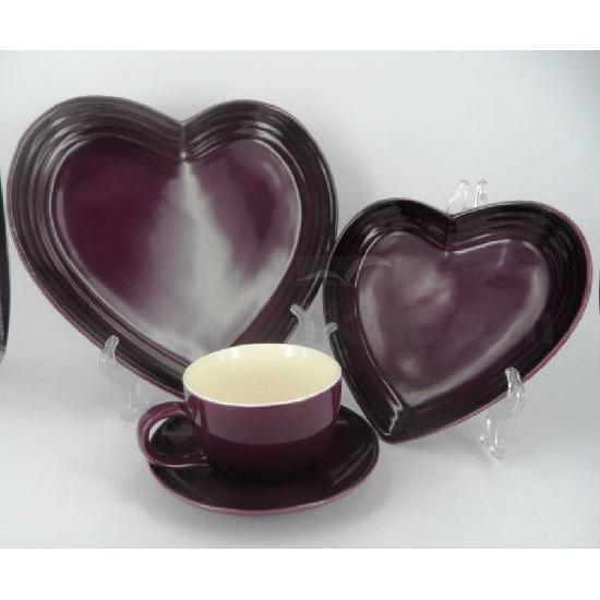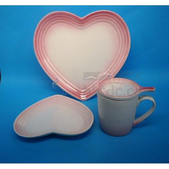 Large heart plate 10.5", Small heart plate 7.5", mug with cover 10oz. or cup & saucer 8oz.