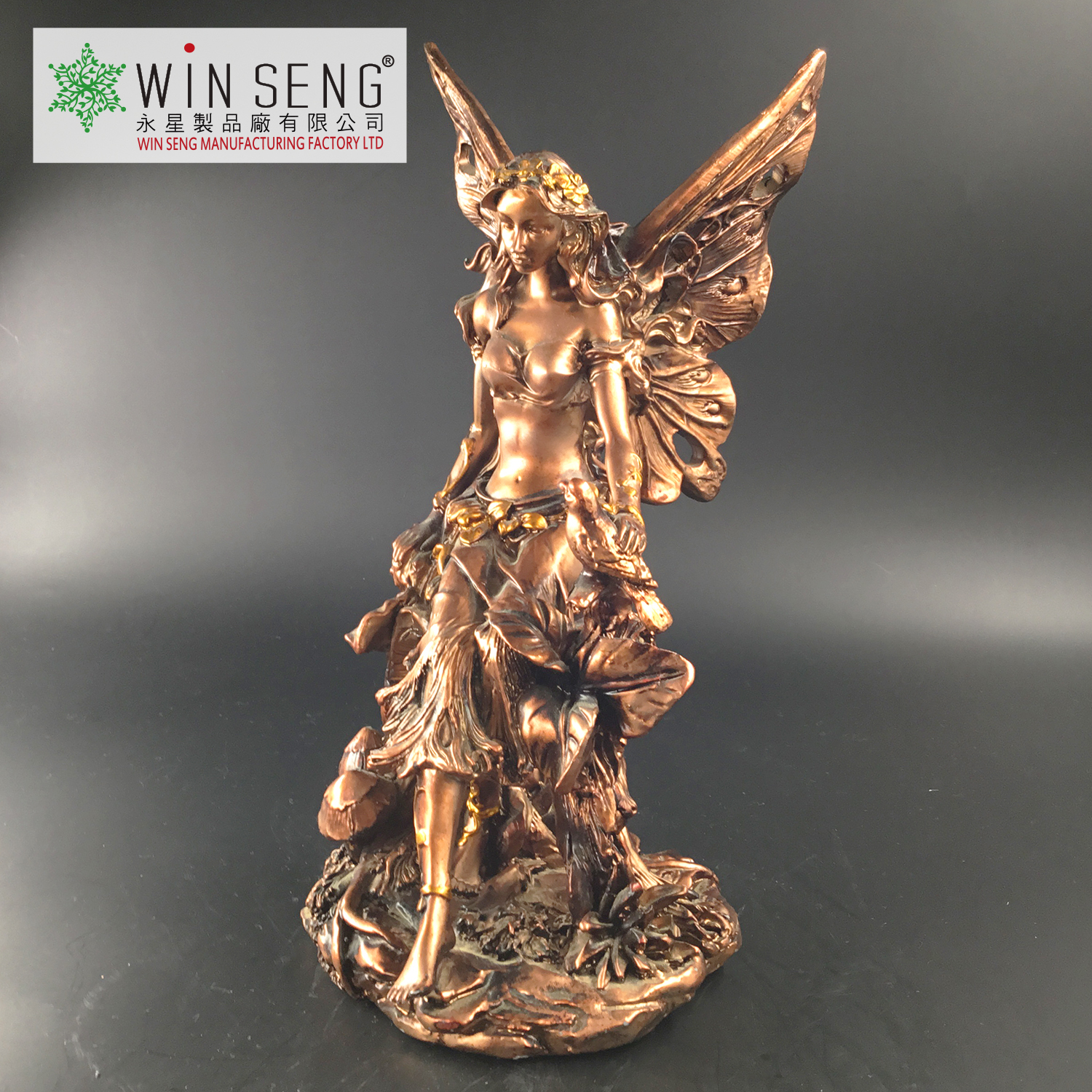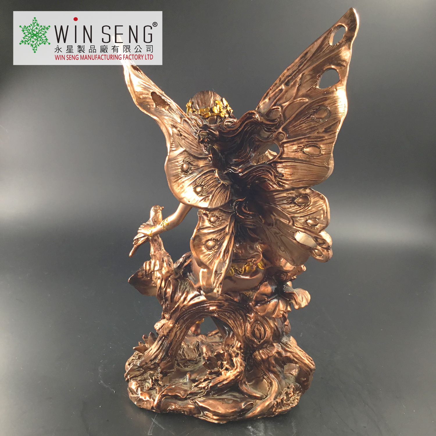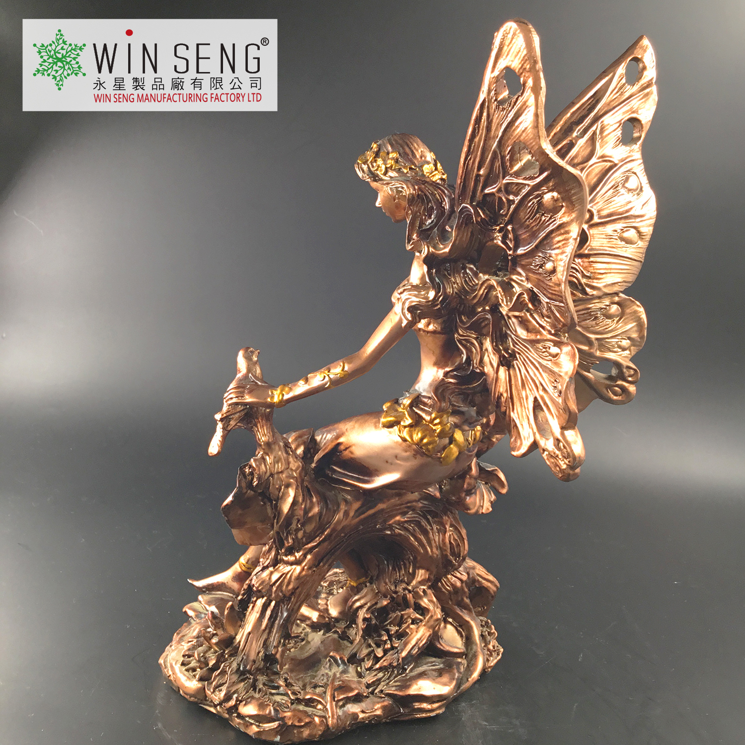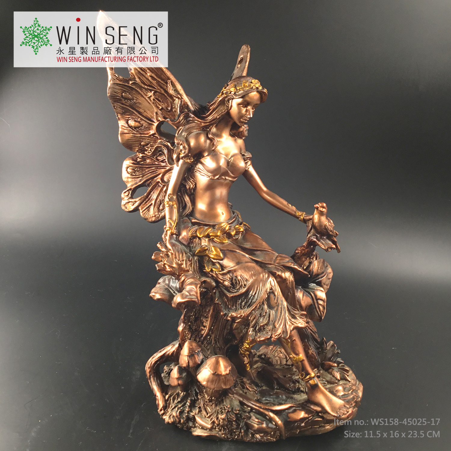 • Item Name: Porcelain copper sitting fairy girl and bird figurine decoration