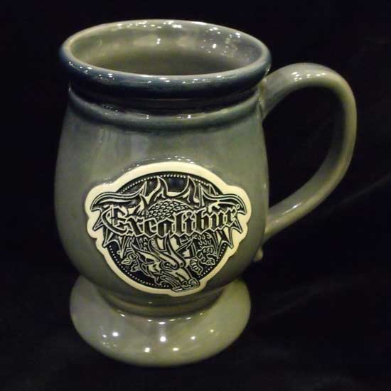 This porcelain cup is delicately crafted to give a polished finish. It is decorated with a badge-like pattern for added style. The cup serves as an excellent drinkware item for offices and households.