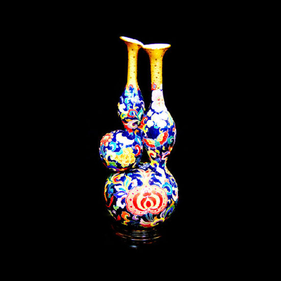 This porcelain decoration has the shape of two calabashes joining together and is skillfully colored. This decoration is a unique add-on to your tasteful room decor. It also makes a special gift for your family and friends.