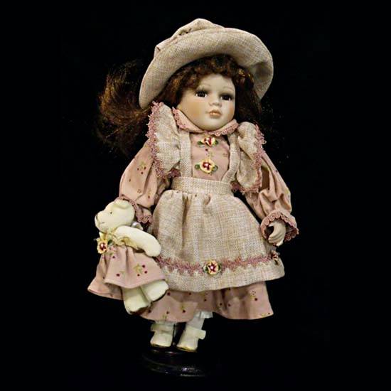 The porcelain doll is always a wonderful keepsake item that warms the heart of young and old. She is wearing an adorable outfit and holding a pretty teddy bear. With realistic characteristics and sweet facial expression, this sophisticated porcelain doll is perfect for play and display.