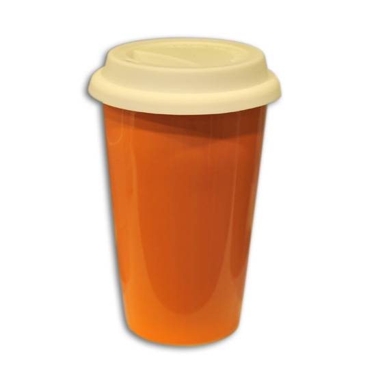 This is a porcelain eco-friendly cup. The eco cup is hard and rigid for serving both cold and hot drinks. There is a silicone lid and sleeve for keeping the temperature of the drink.