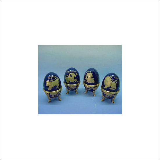 • Middle 1: WS101-48698-1, porcelain blue enamel egg shape jewellery box with Capricorn pattern with 3-gold stand, 2.5"(D) x 4"(H).