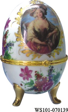 • Porcelain egg shaped jewellery box with classic figurine with size in D4" x H6".