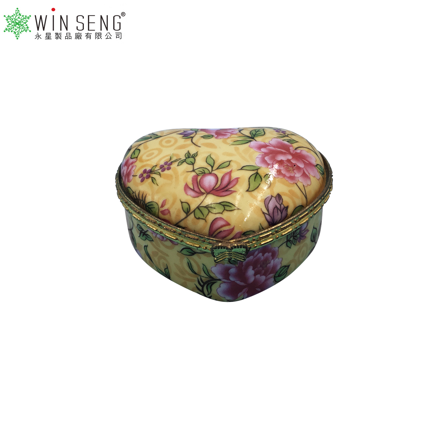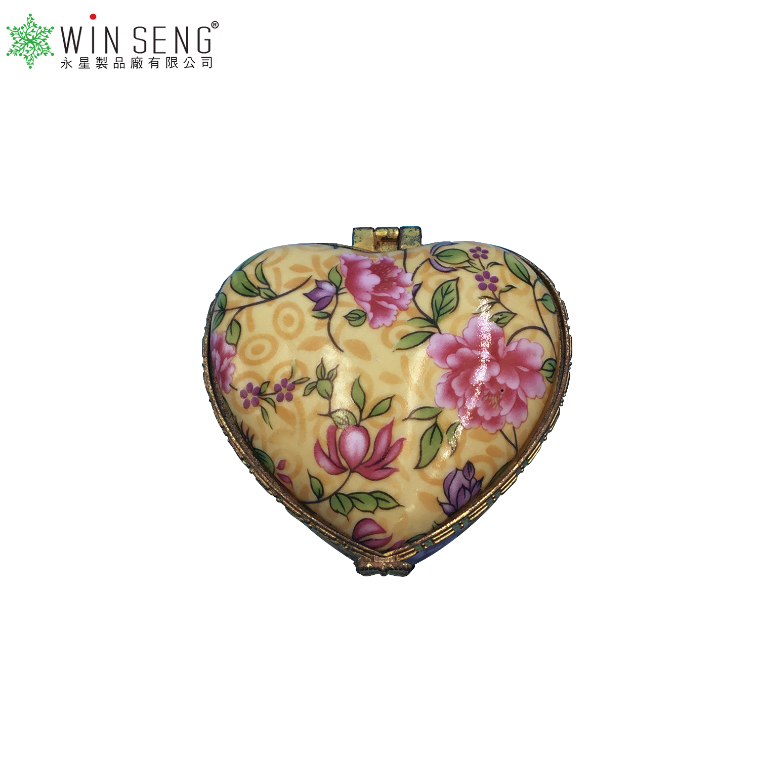Complete your royal-like vanity setup with this elegant and graceful jewelry box. Featured is a heart-shaped jewelry box rendered in top-quality porcelain for an antique and delicate look. Matched to its excellent material is its exquisite design, as this trinket box is covered in a floral print featuring pink and purple blossoming flowers that exudes a graceful, princessy, and subtly luxurious aura to your space. Store your trinkets in this trinket box and place it on your vanity table to complete the regal vanity setup.