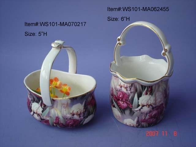 • Porcelain flower basket with flower pattern with size in 5"H.