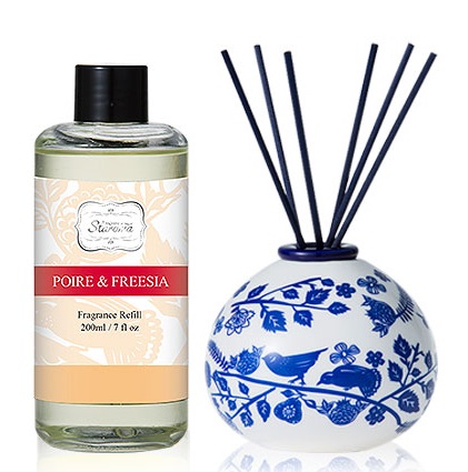 Deluxe premium set of porcelain diffuser, reed sticks and fragrance oil