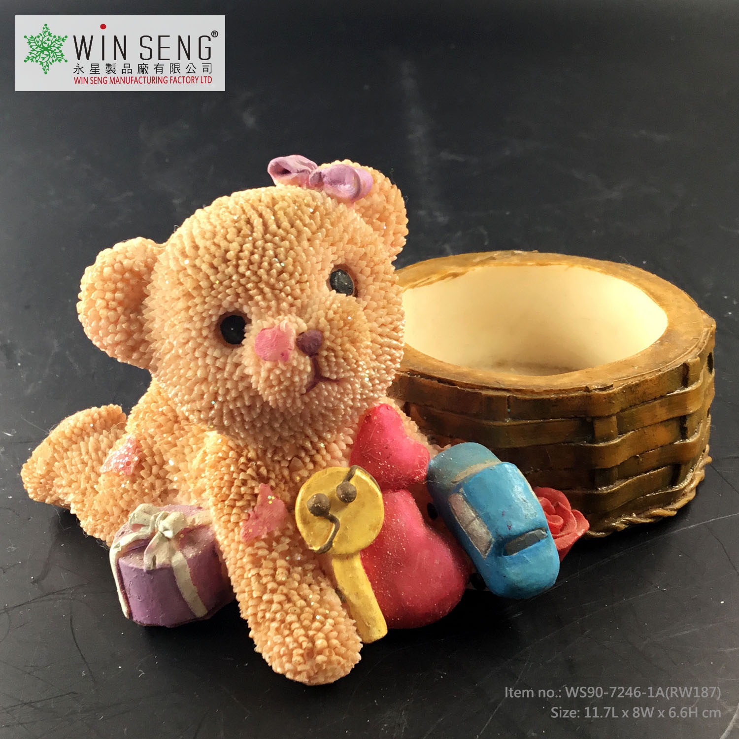 • Item Name: Porcelain ribbon bear with a circle basket and toy and heart figurine decoration