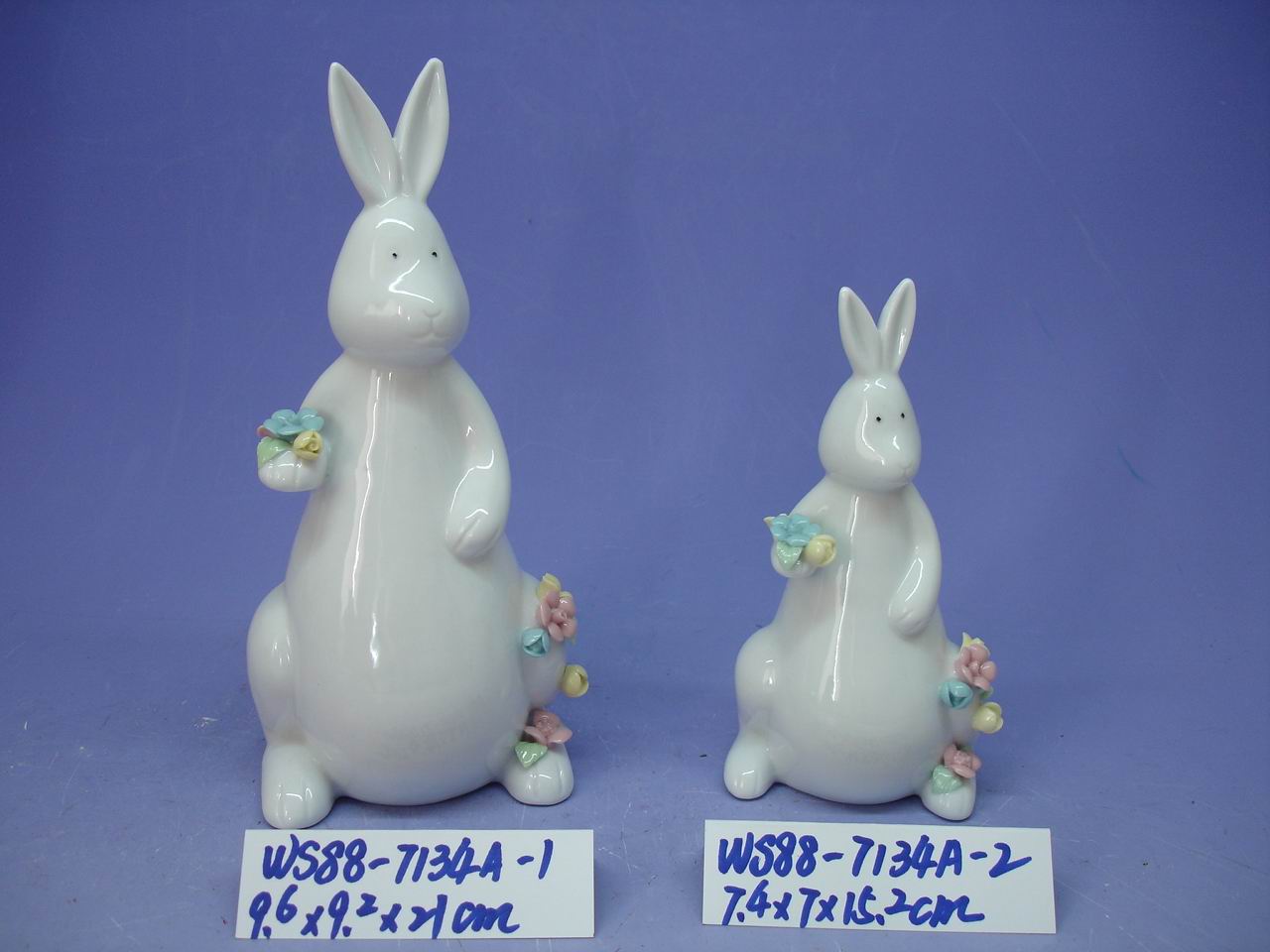 • Porcelain white rabbit with flower pattern with size in 7.4L x 7W x 15.2Hcm / 9.6L x 9.2W x 21Hcm.