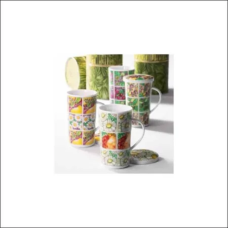 • Mug''s body and lid are decorated with colorful floral pattern.