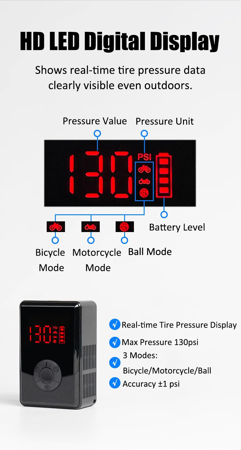 Don't let its size fool you. The 48W motor and aluminum alloy cylinder generate a powerful 120 PSI, ensuring fast and efficient inflation for even high-pressure tasks.
