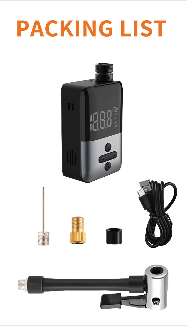 Complete All-in-One Kit: Ready for any task right out of the box. The package includes a ball needle, air nozzle, tubing, a Presta valve adapter ("Beautiful mouth"), and conversion heads, covering all your inflation needs.