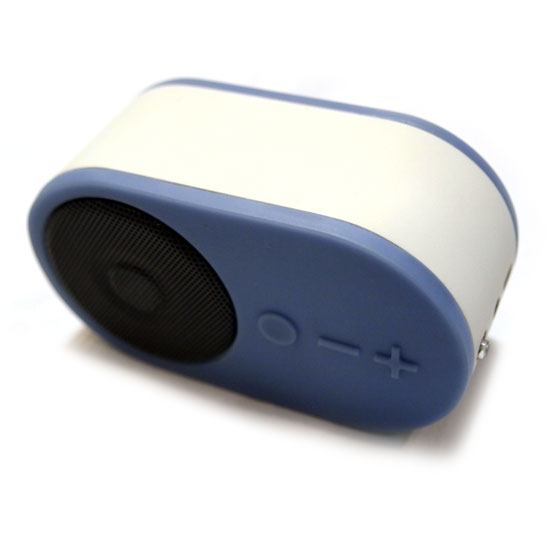 This portable Bluetooth speaker boasts a blue and white housing with a polished finish, conveying a chic and contemporary touch. The versatile speaker is crafted with a 3.5mm audio jack and is compatible with various Bluetooth cell phones, MP3, MP4, etc. The chic device is professionally engineered to deliver high-quality sound indoors.