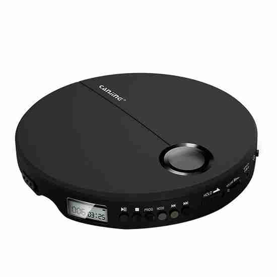 Discman design for easy portabilityLCD display with low power indicatorSupports CDs, CD-R/RW, MP3 CDs, WMA, and HDCD discsAudio formats supported: MP3, WMA, WAV, AACEQ function available40-second anti-shock protection for CDs120-second anti-shock protection for MP3sStereo earphone (3.5mm) audio output and AV inPowered by 2 AAA batteries or Micro-USB (5V 1.5A)Includes USB cable, user manual, and earphones
