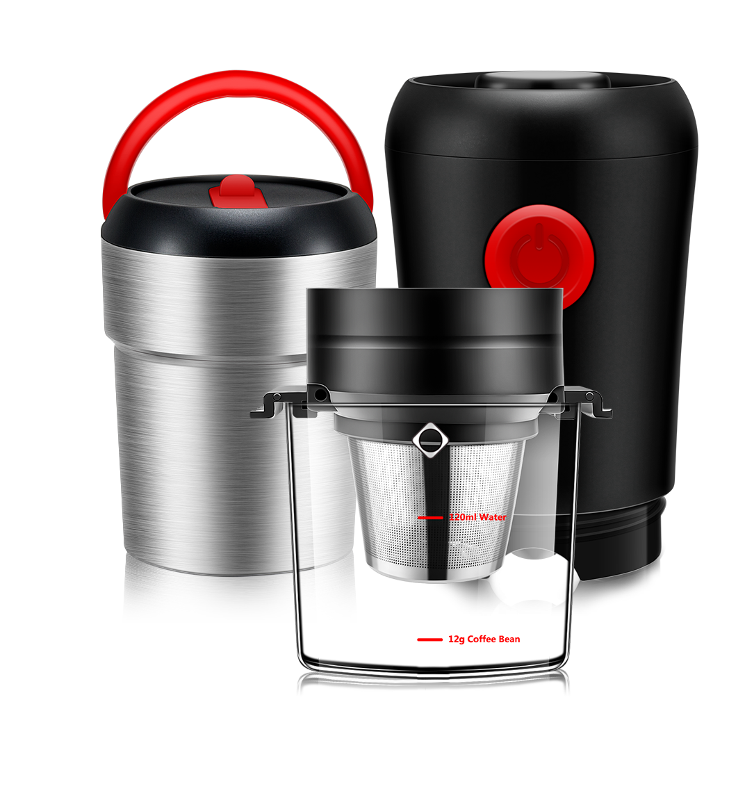 * 3 in 1 design ( grinder, filter and coffee cup combination)