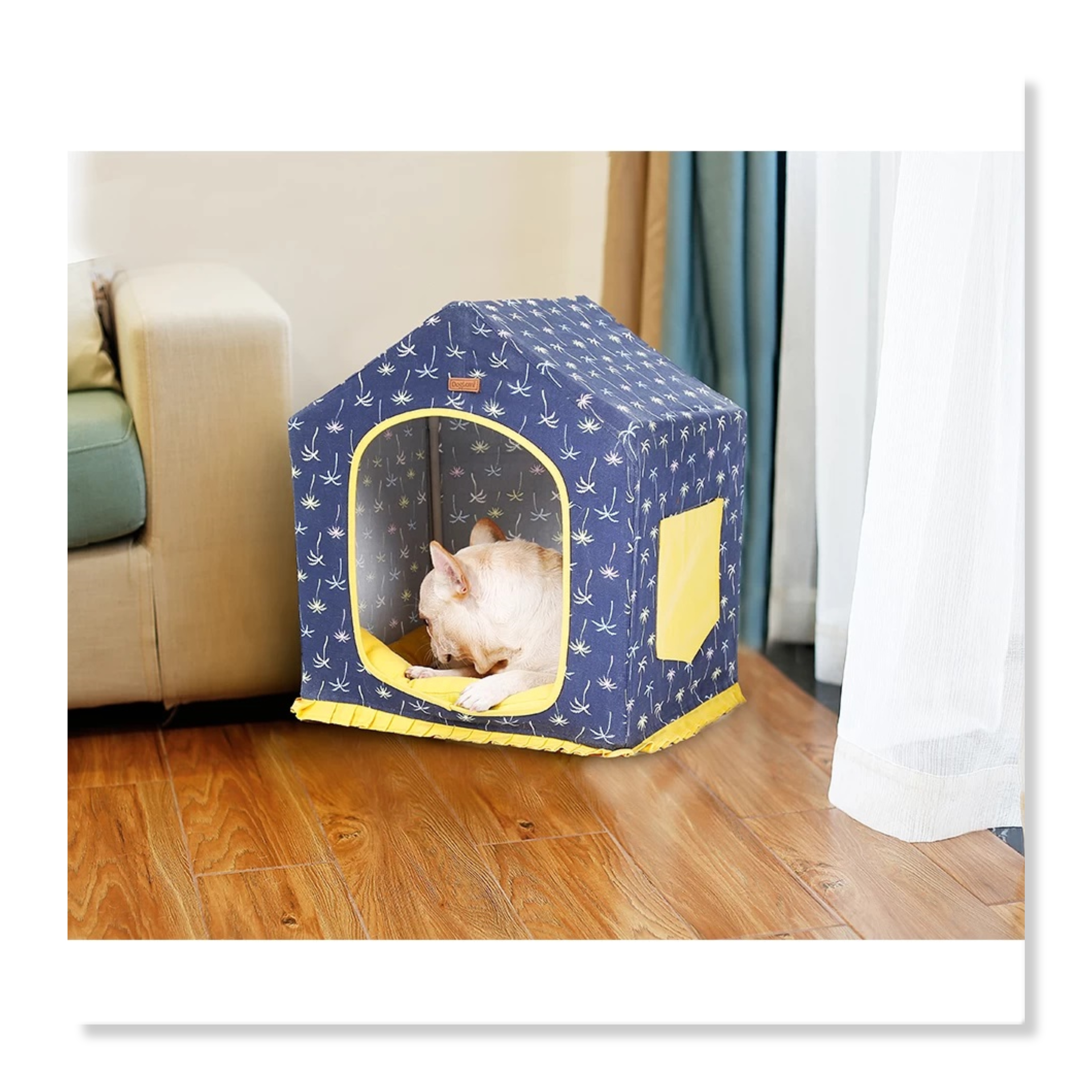 2. The fabric of the house is made of coconut-patterned canvas, which is very fresh and suitable for the four seasons; the house is equipped with large pockets and can hold small items for Cats;