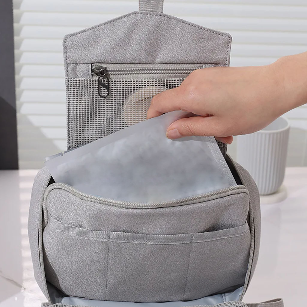 Portable Hanging Toiletry Bag with 3 Compartments and Outer Front Pocket includes the following features :