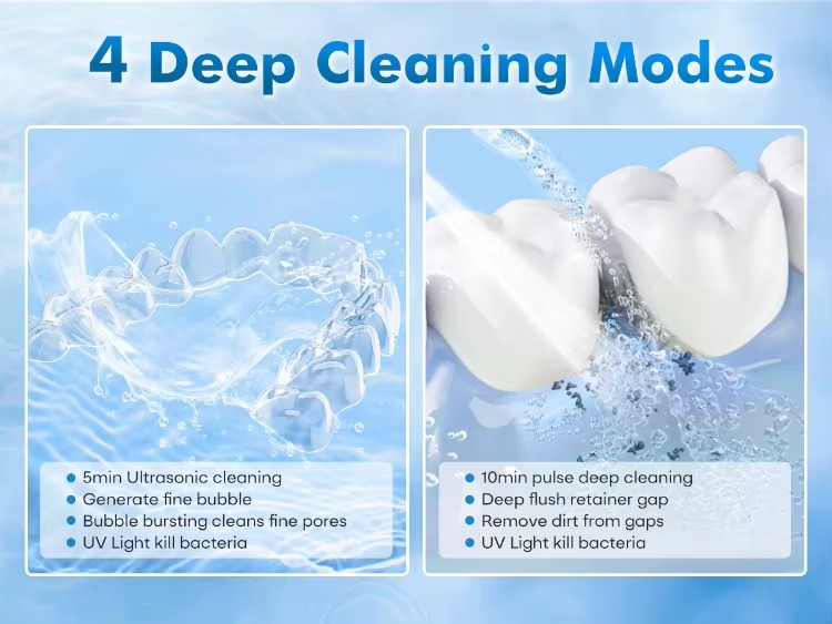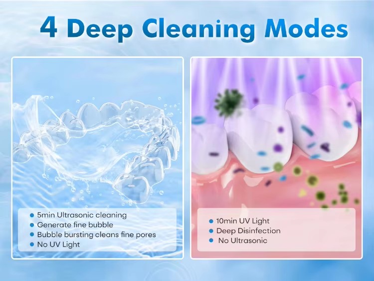 - 4 cleaning modes for different scenarios (5-min ultrasound + UV / 10-min pulse + UV, etc.)