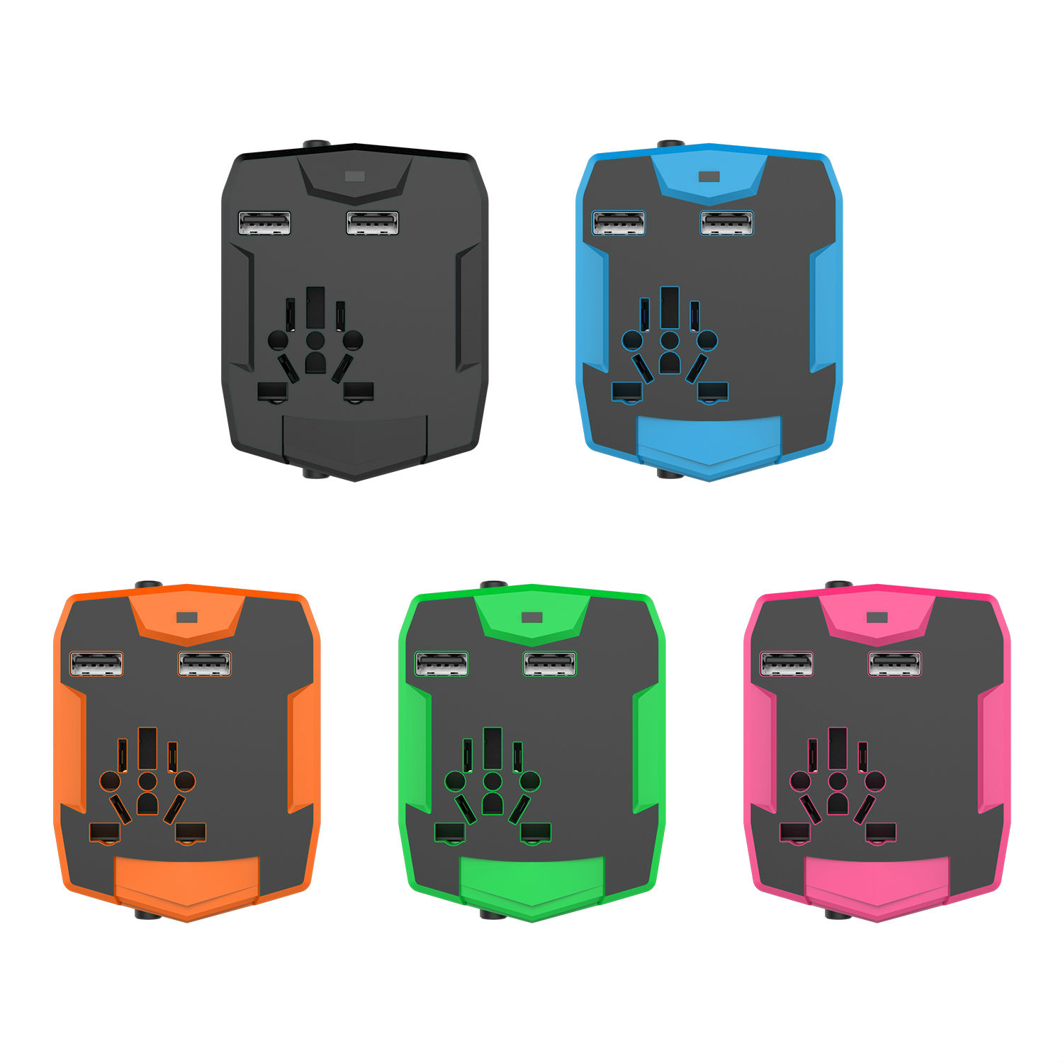 Black, Blue, Green, Pink, Orange