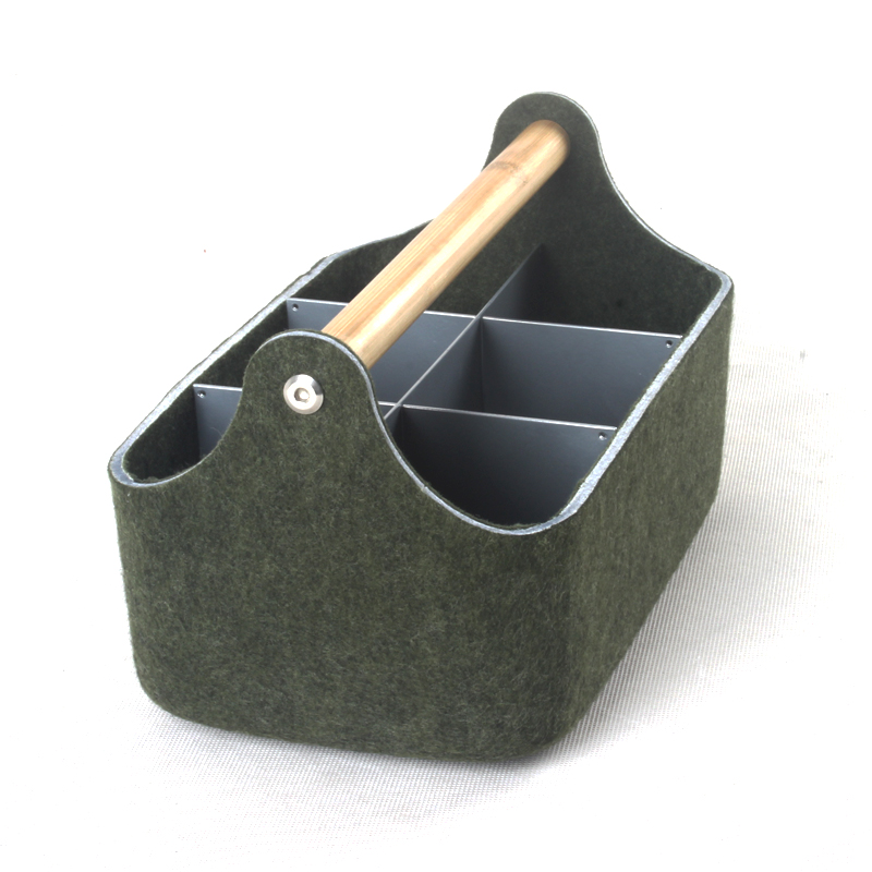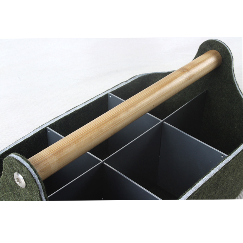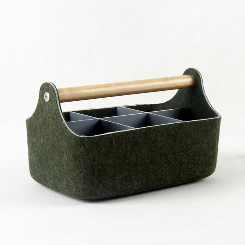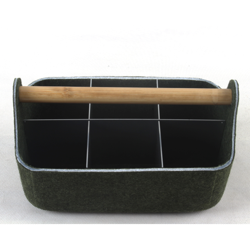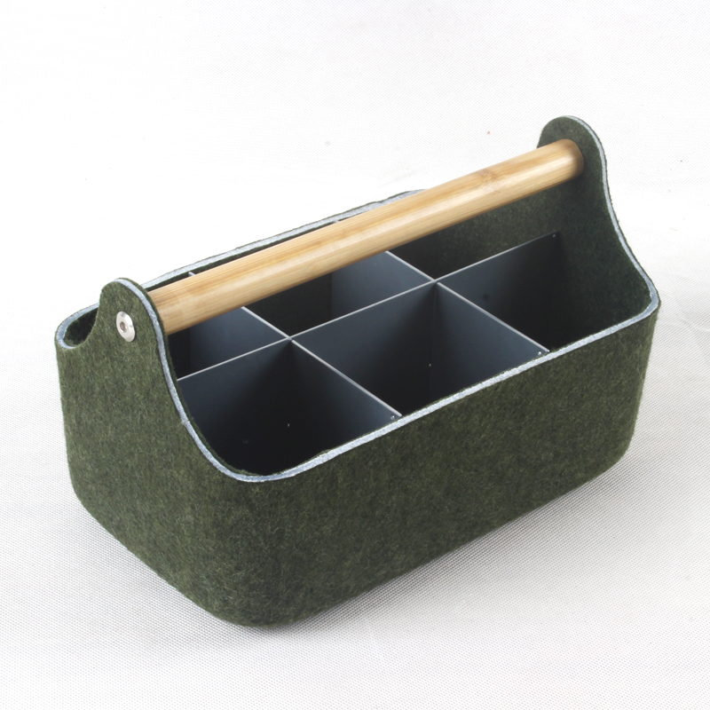 Portable Office Desk Fabric Storage Basket Metal Divisions with Wooden Handle Recycled Durable Felt Storage Bins for Office Desk Organizition