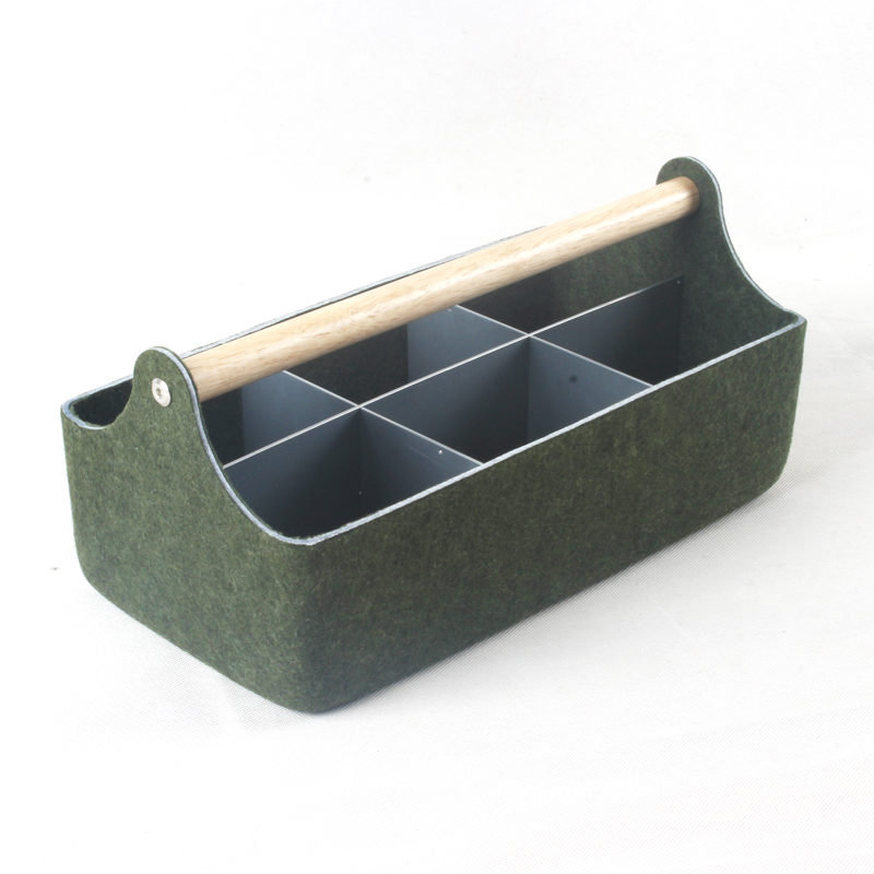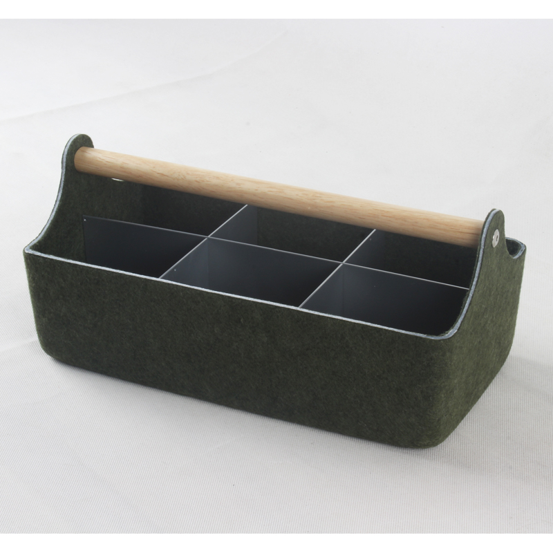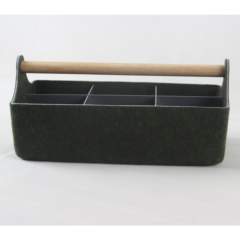 Portable Office Desk Fabric Storage Basket Metal Divisions with Wooden Handle Recycled Durable Felt Storage Bins for Office Desk Organizition