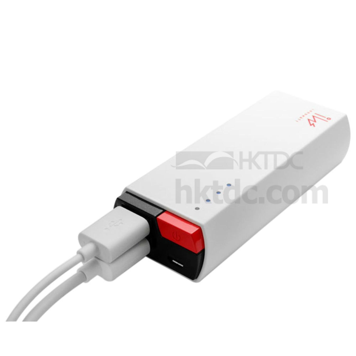 The powerbank offers a capacity of 3000mAh and is perfect for charging smartphones. It comes in a rectangular shape and has with connection ports on top. With dual output ports, you can charge two devices at the same time with this powerbank.