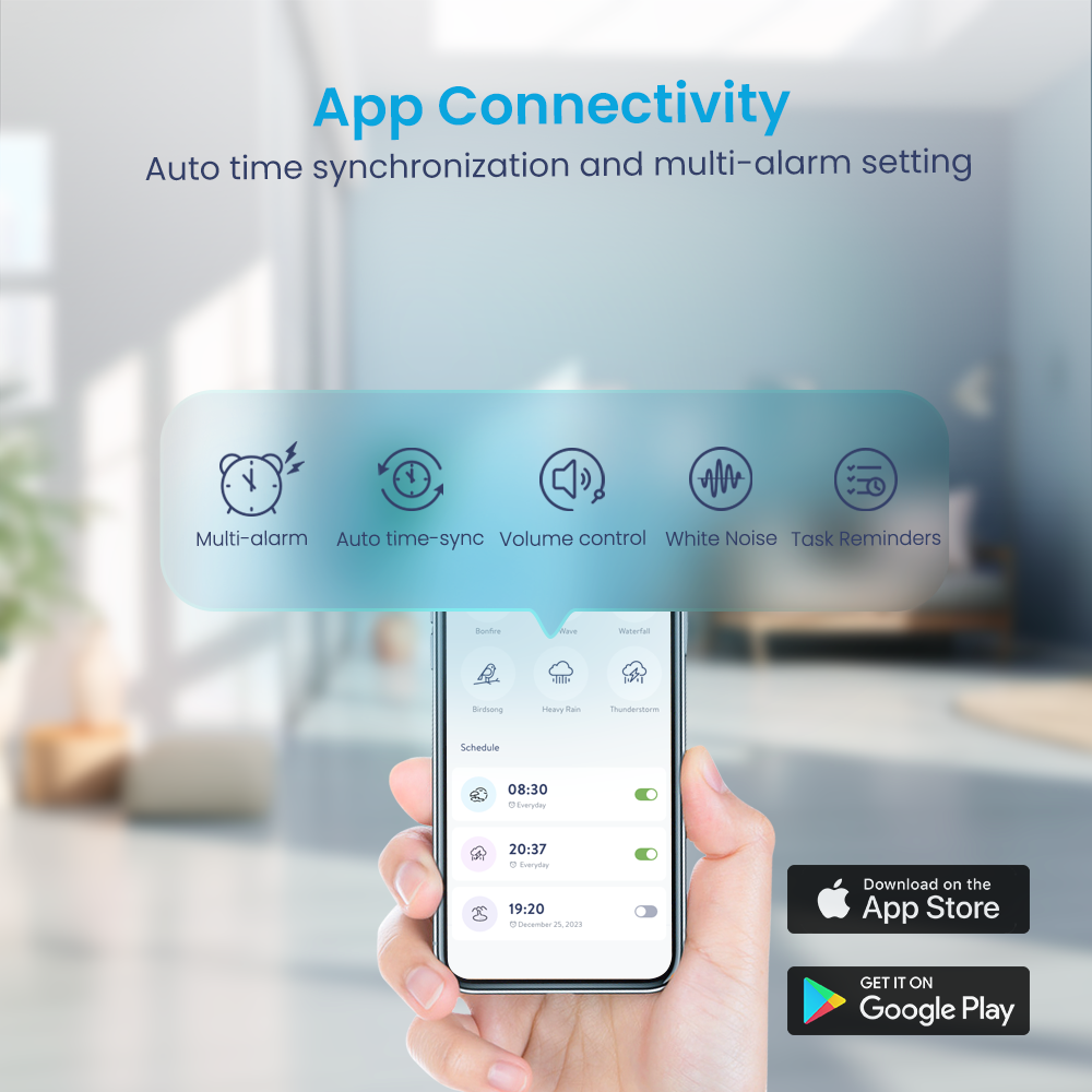 Enhanced Connectivity: Connect and control your device effortlessly via our dedicated iOS and Android app. Manage settings, alarms, and personalized features from your smartphone.