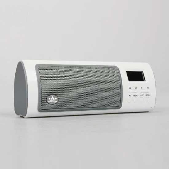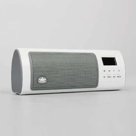 This portable speaker stands out from the rest with a modern and playful design in white. Supporting USB, SD cards, and FM radio, this portable speaker impresses with its versatility. Enjoy your favorite tunes with true sounds with this portable speaker.