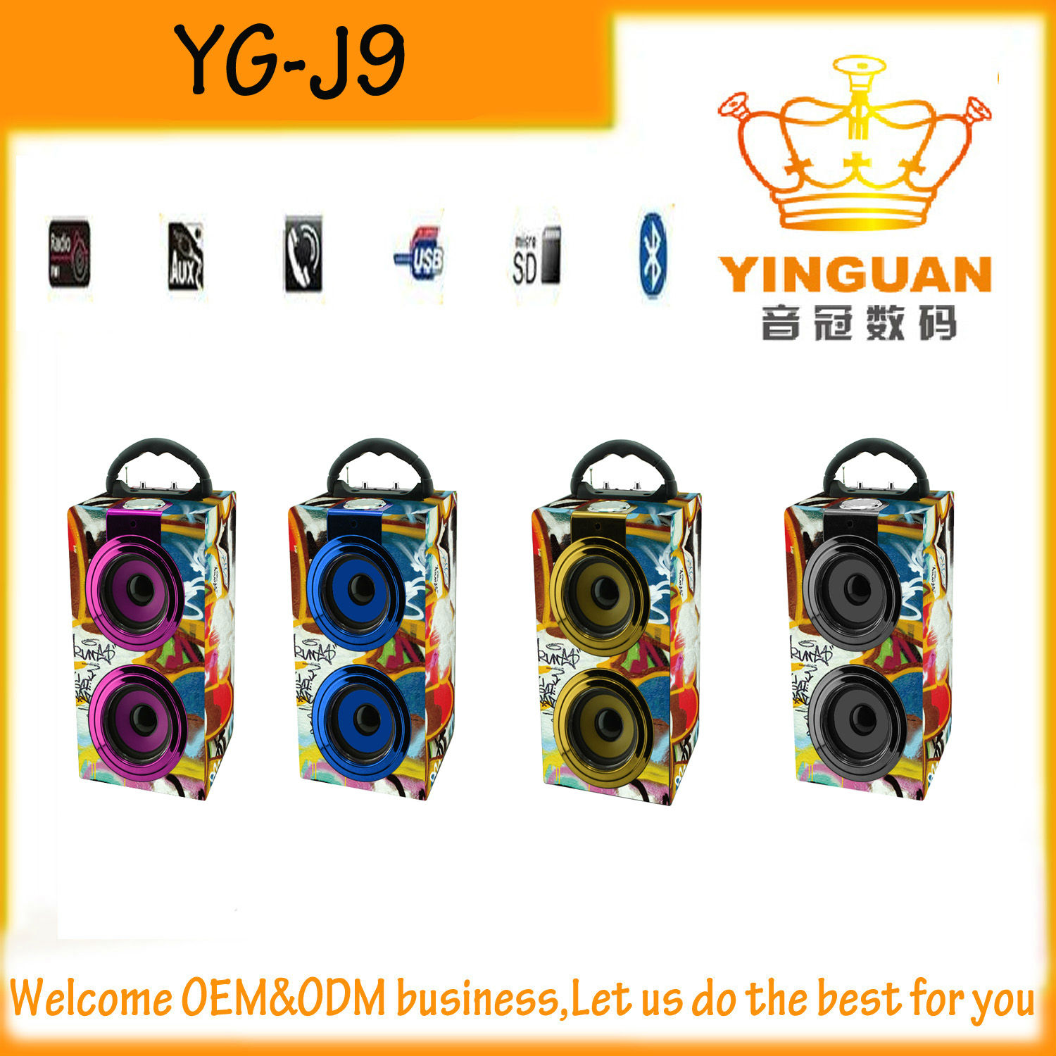 • Speaker function :Support PC audio input, SD and USB card, FM Radio function