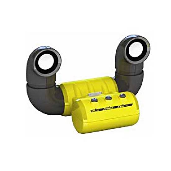 This stylish speaker set is lightweight and portable. It comes in unique pipe-like design in gray and yellow colors. It features bold and powerful sound quality. This is the perfect travel companion for music lovers.