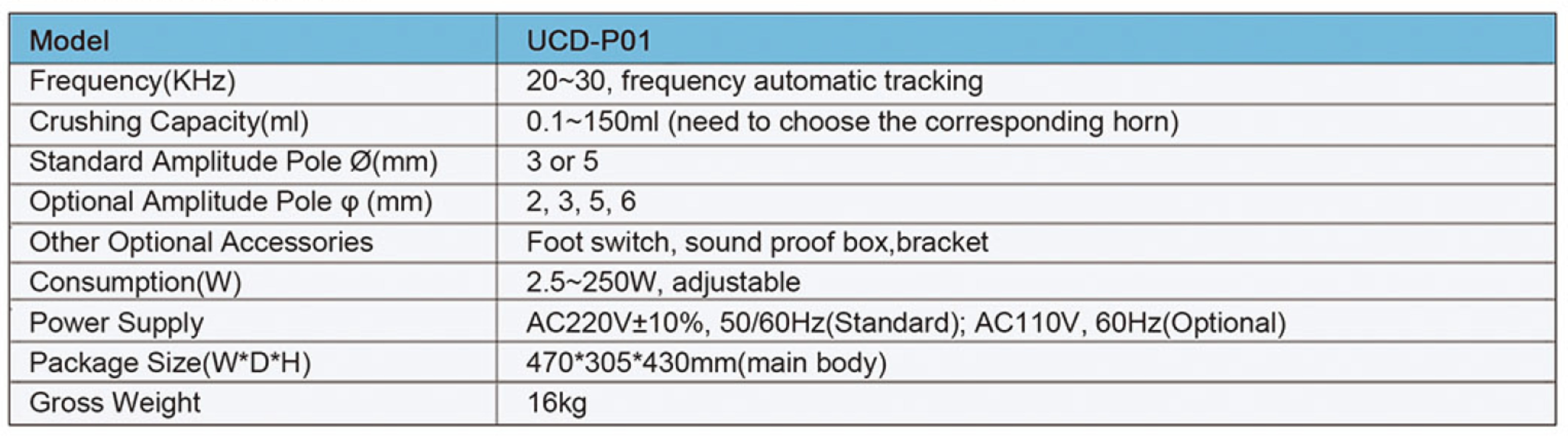 * Ultrasonic time setting for on and off: 0.1-9.9s