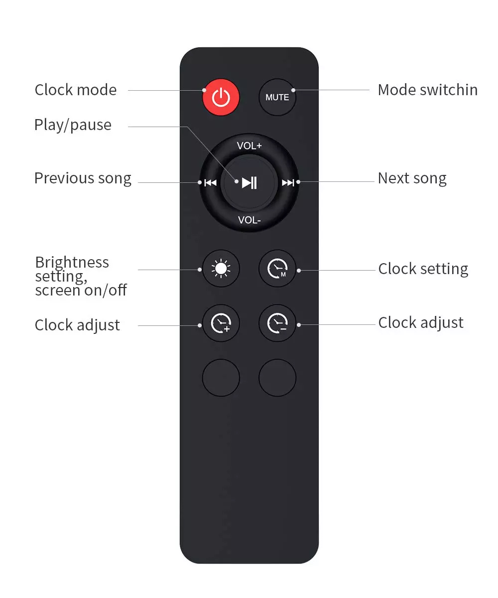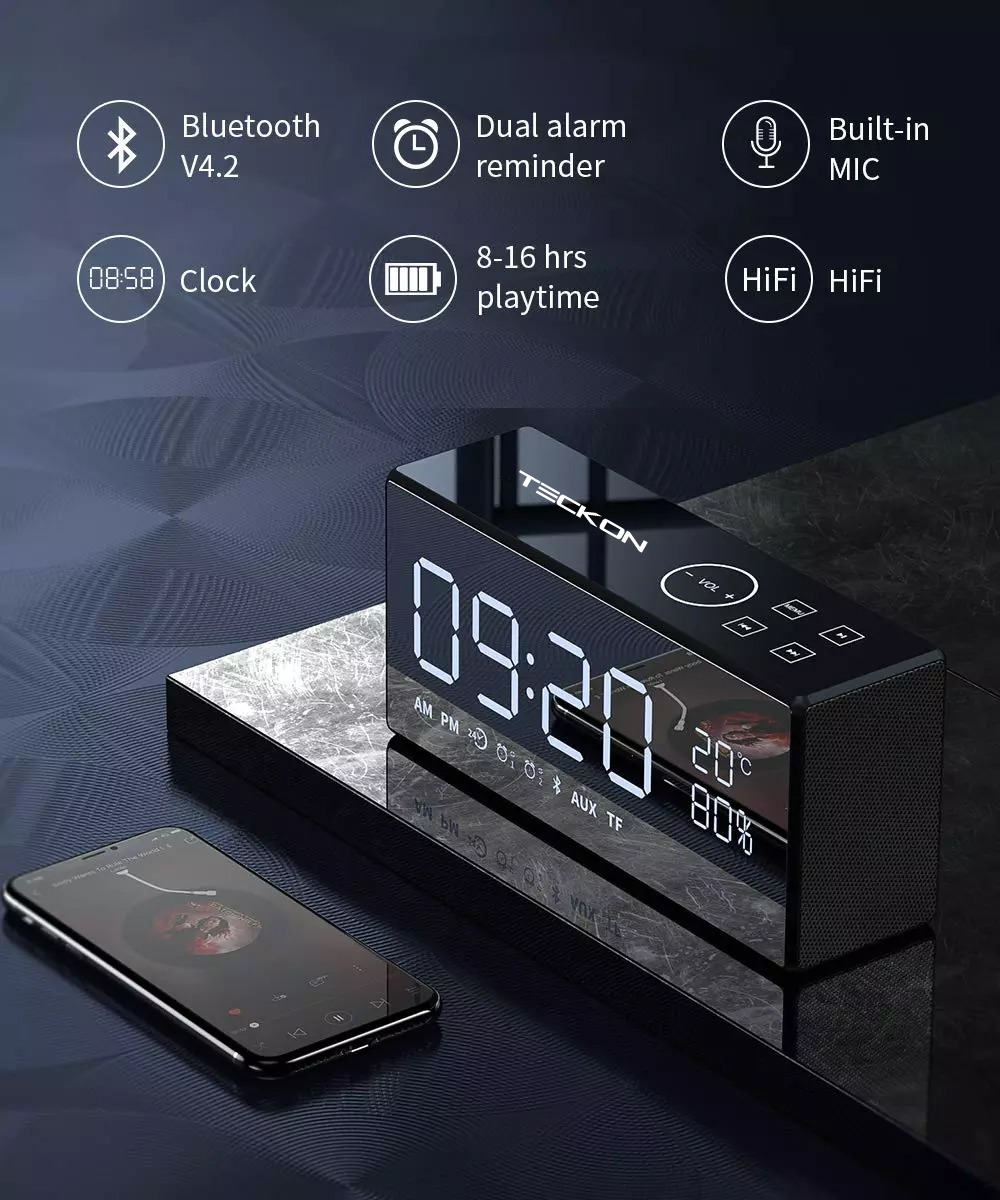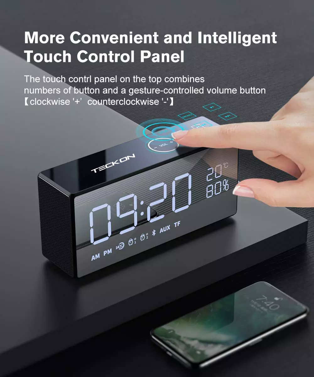 - Function Bluetooth/calling/ FM/AUX/Dual alarm clocks/battery display / indoor thermometer/ TF card