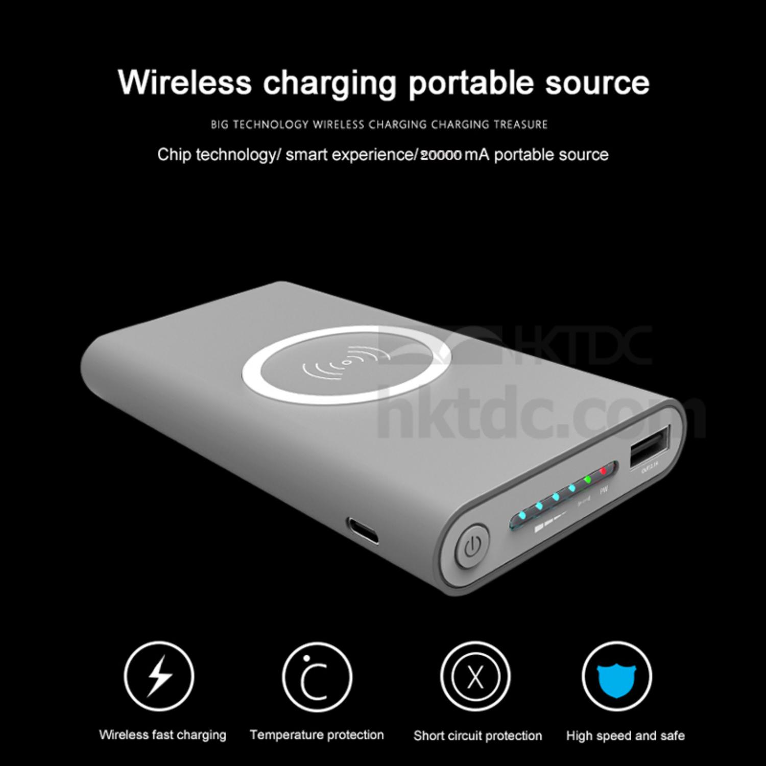 This powerbank comes in a portable rectangular design and offers convenient wireless charging. It flaunts a high power capacity and has a USB port for output. The powerbank has five lights to indicate operating status and is a reliable power source for your smartphone and other mobile devices.