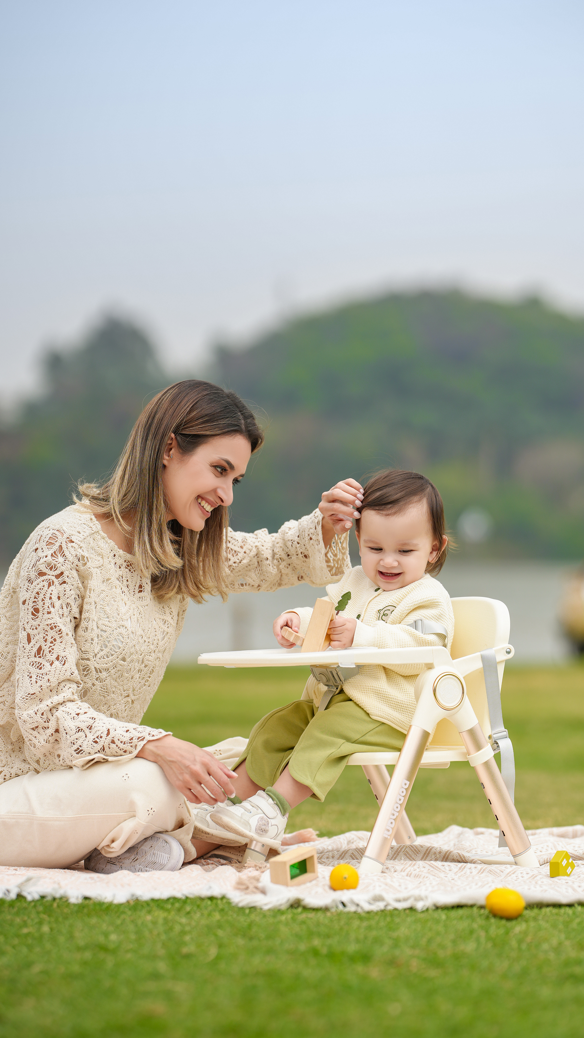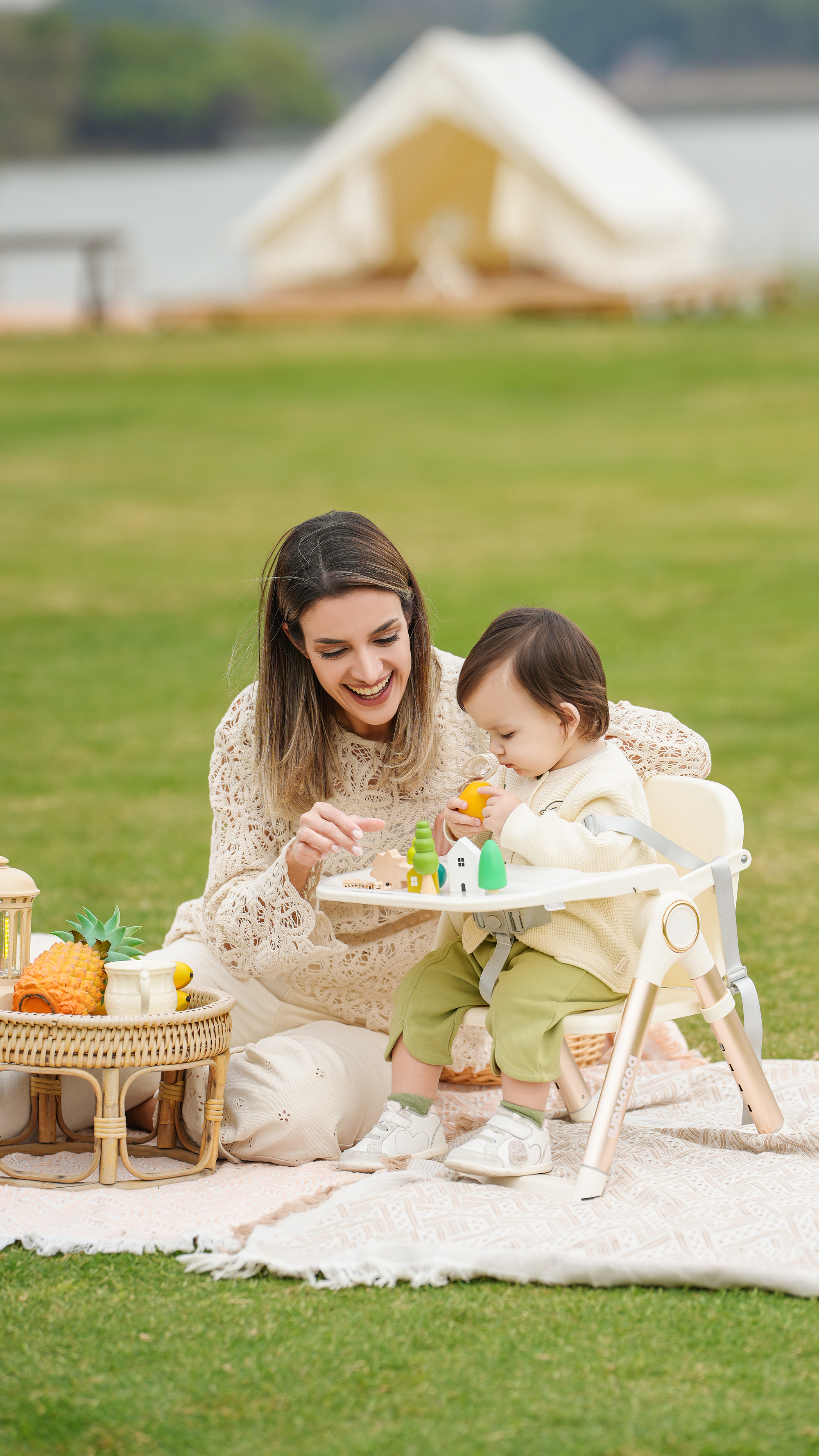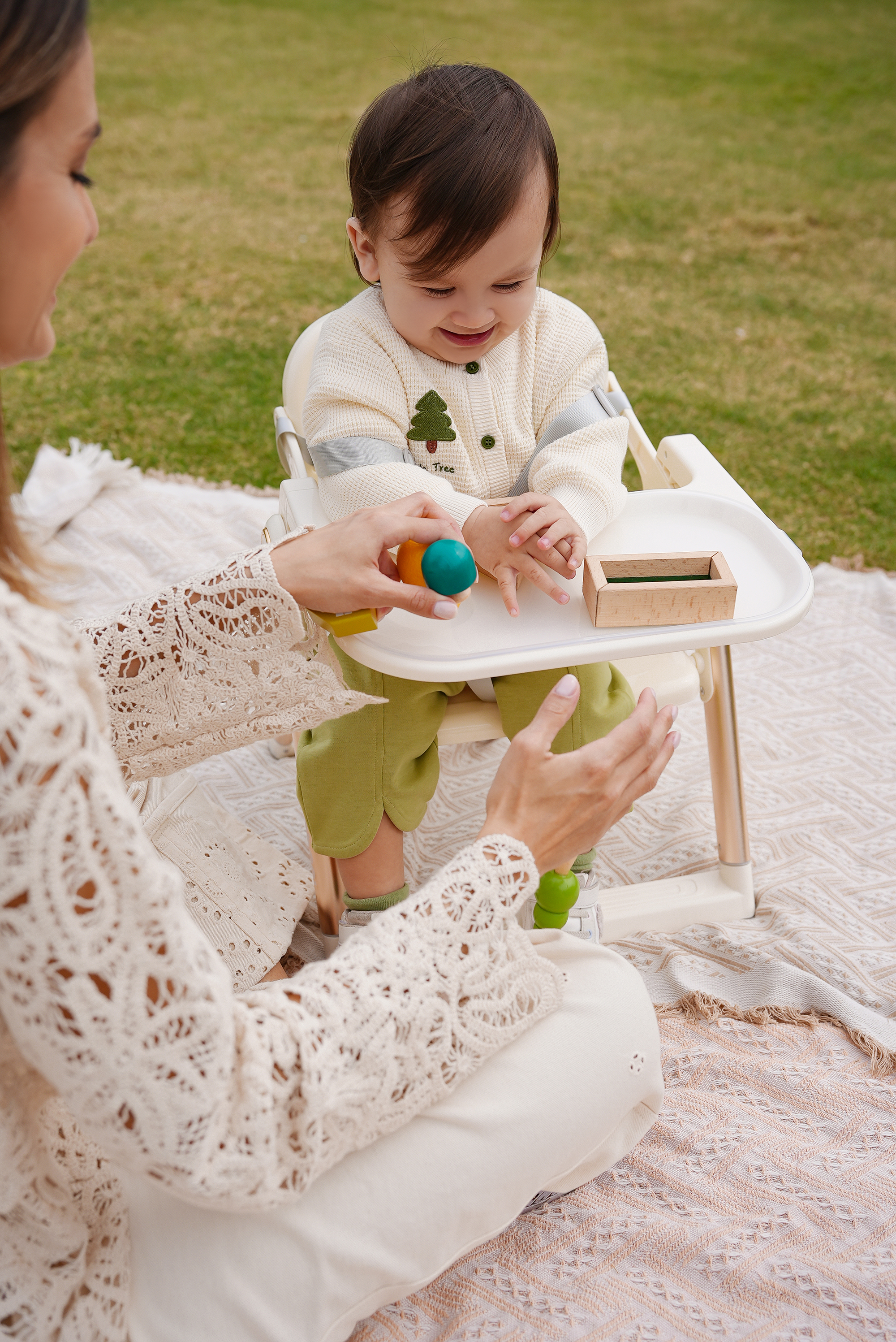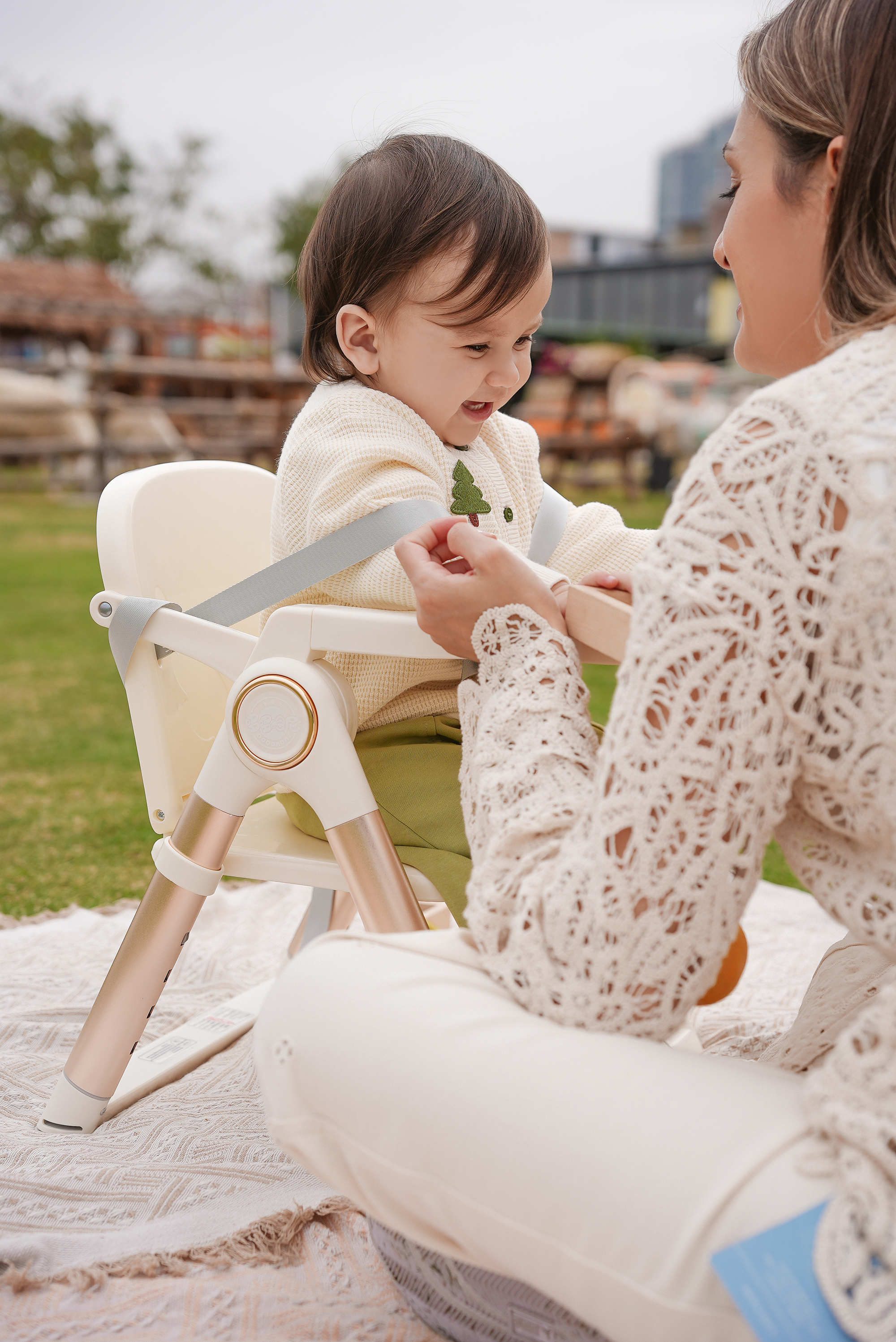 Erg n mic C mf rt Supp rt: The seating area is c nt ured t supp rt the infant's spine, paired with a secure harness system t ensure safety during feeding.