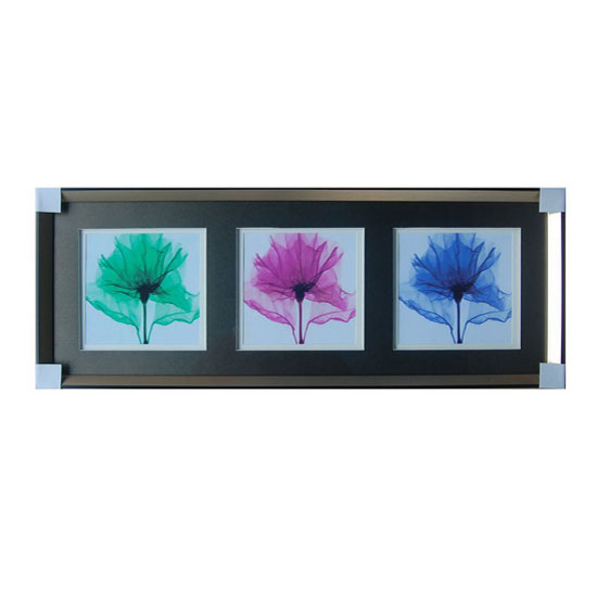 This featured poster painting features a set of three works. It showcases a fragile plant presented in three different hues. This simplistic, contemporary work visualizes peacefulness and tranquility.