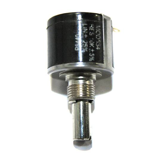 As shown is a potentiometer which is commonly found in audio control devices. This potentiometer is widely used to control electrical devices such as a volume control of a radio. It can also be used in combination with filter networks act as tone controls or equalizers.