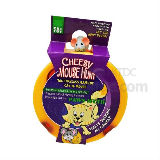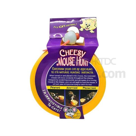 Intrigued by scratching sounds and glimpses of a moving mouse in the cheese, your cat will begin to hunt the mouse. It will wait, paw and pounce trying to catch its rival