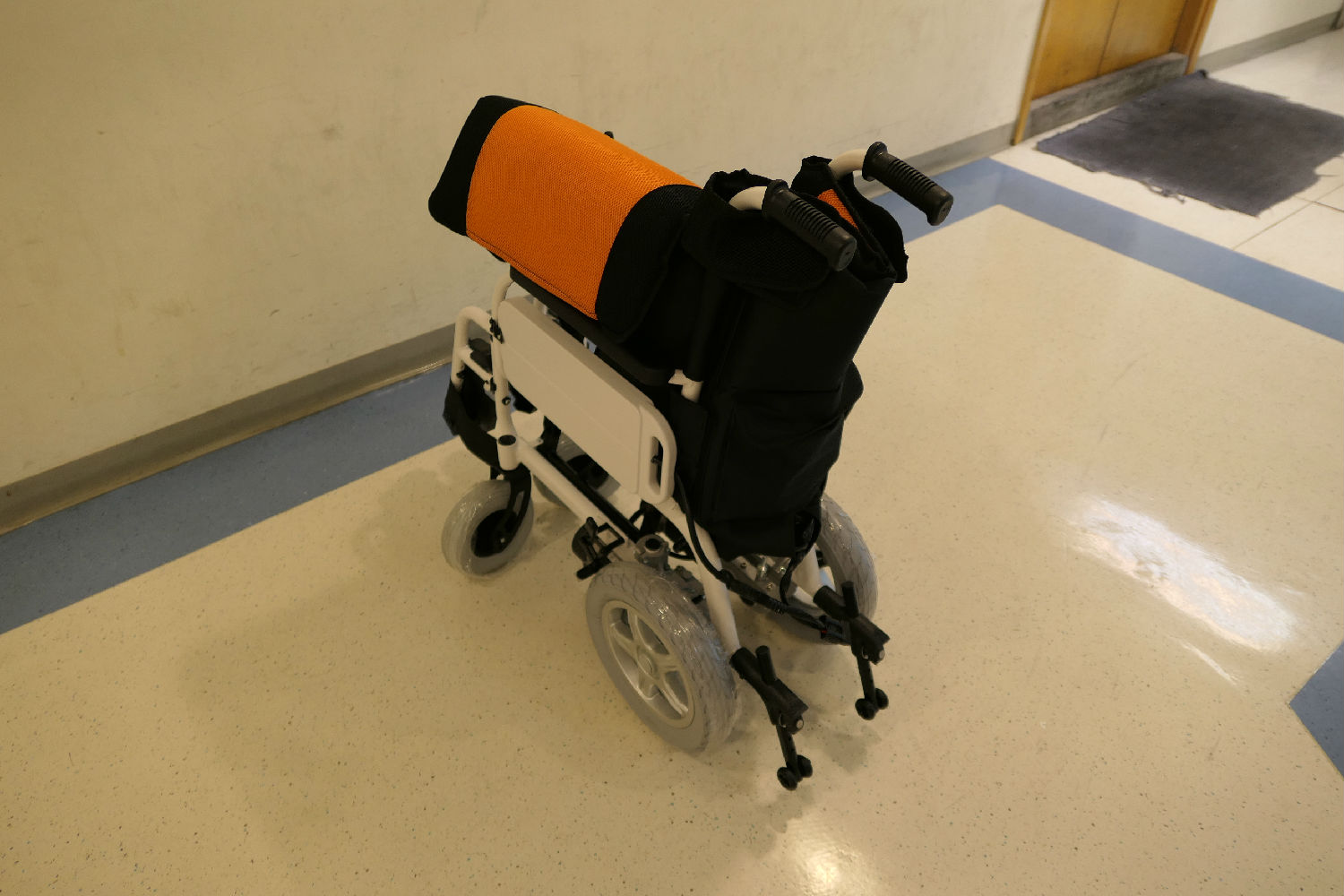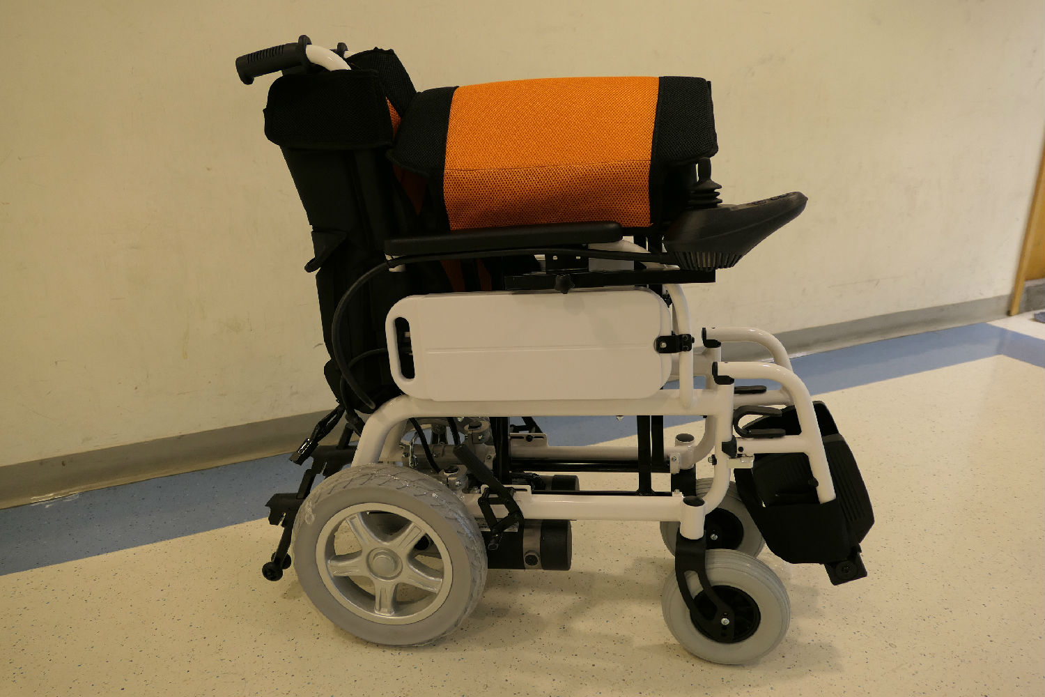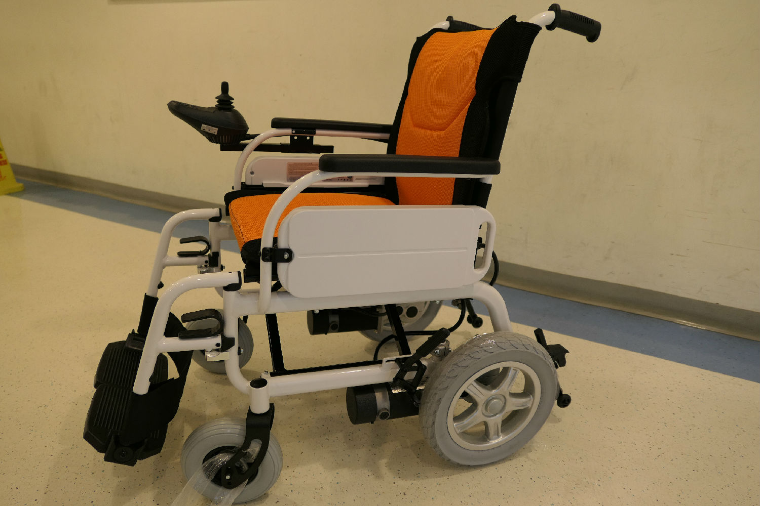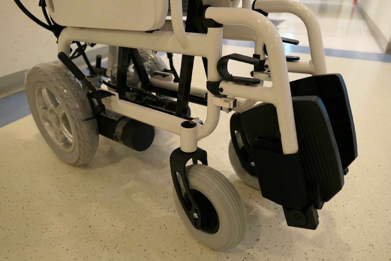 • Parts : Drop back handle, detachable flip-up footrest, rubber foam castor and drive rear wheel, additional cushion, Lithium battery on both armrest board, foldable