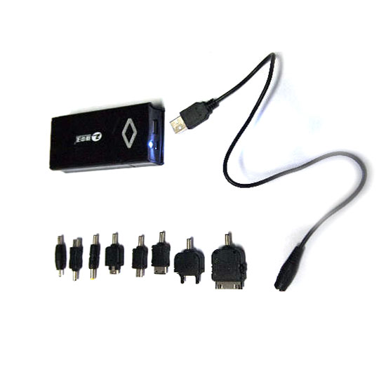 Highlighted here is a power bank that comes with a cable and 8 connectors. It is suitable for a wide range of mobile phone brands such as Motorola, Samsung, Apple, LG, Sony Ericsson and Nokia. The shell is well made of sturdy ABS and PC plastic material for durable use. Featuring a portable design, this power bank is ideal for on-the-go use.