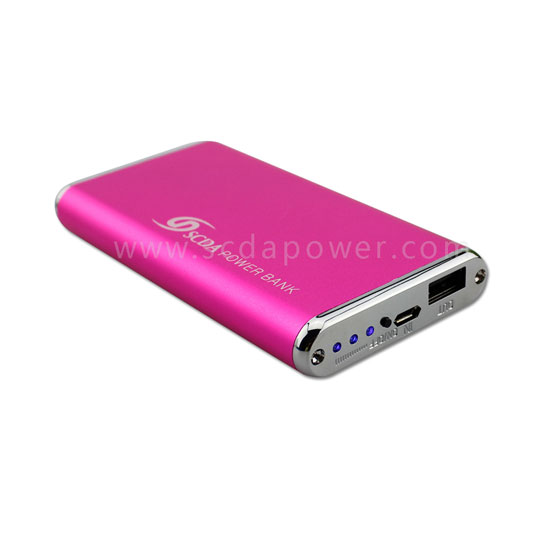 Displayed is a power bank coming with a pink finish. It offers a battery capacity of 6,800mAh for charging. It is an ideal partner for your electronic gadgets.