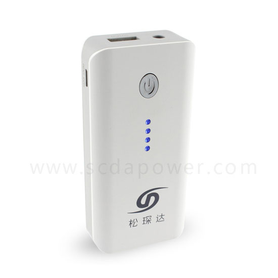 This is a power bank featuring a white finish. The 5,200mAh battery capacity can charge your mobile phone twice. Compact in size and lightweight, this power bank is a great choice for travel and work.