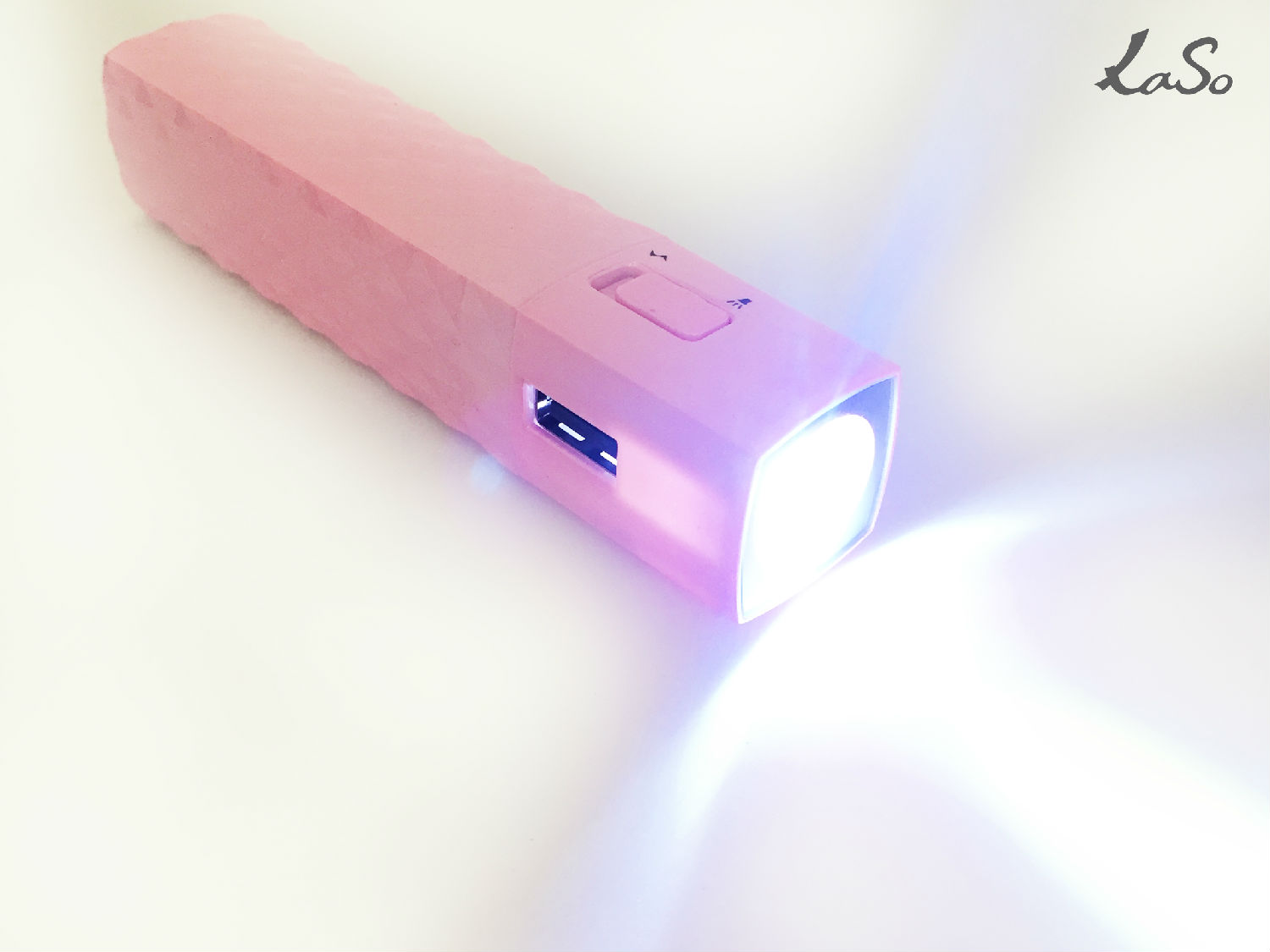 The highlighted power bank comes in a rectangular shape and is adorned with diamond patterns on the exterior. It has a USB port on the side and includes a cable for charging. This versatile and convenient powerbank can also be used as a torch to provide bright illumination.